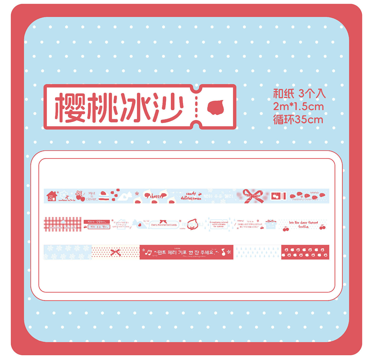| Colores | Toffee de conejo,Matcha fina,Queso Queso,Bacido de cereza |