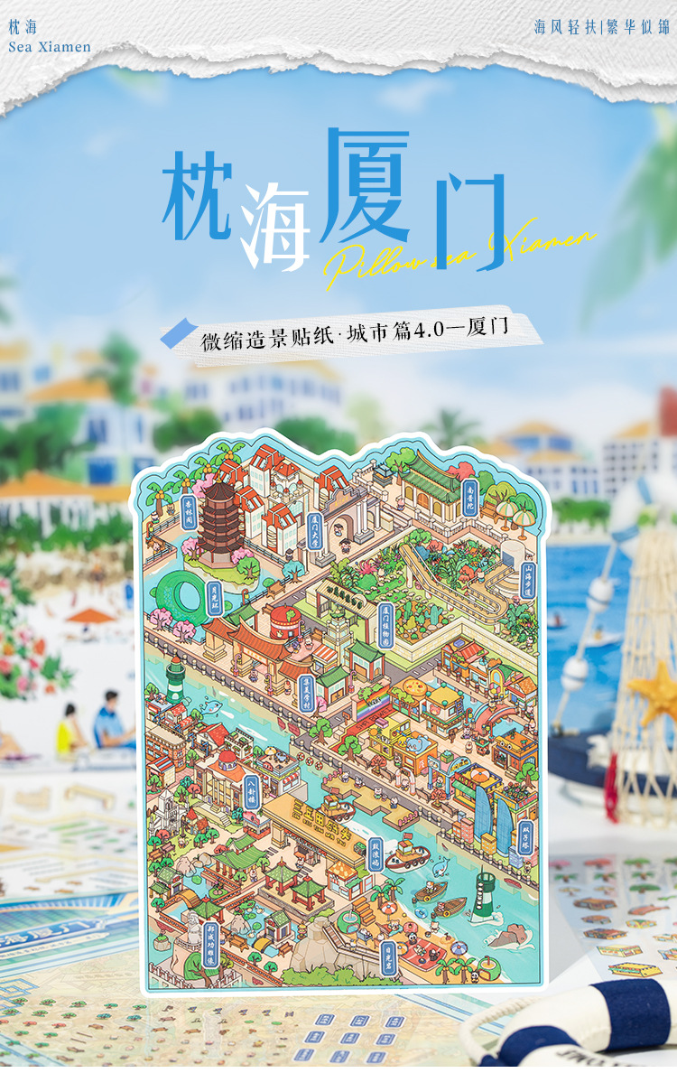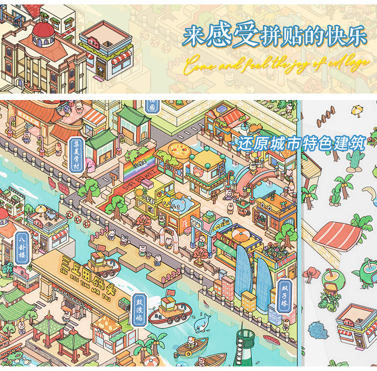 Yu Xian Pet, pegatinas de paisajismo en miniatura, artículos de la ciudad 4.0 Xiamen 3D Stereo Cabin Student Fun Collage