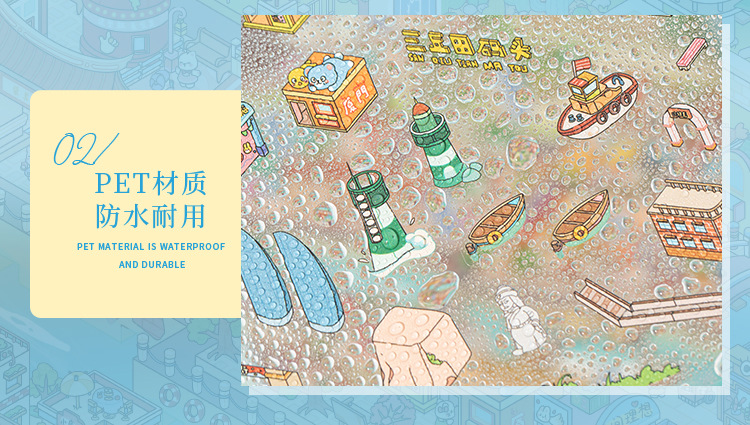 Pegatinas de paisaje en miniatura de rastro de papel Zoo Class Meow Small Town Series Descomprime Escena de bricolaje Pegatinas de material