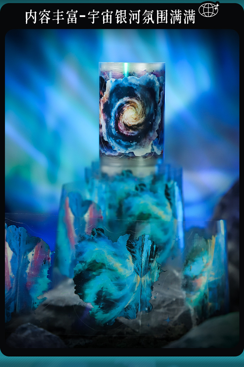 | Color | La Vía Láctea sin fin, el espacio polar en espiral, el universo psicodélico, el Reino de las auroras, el cielo nocturno estrellado, cruzando el cielo |