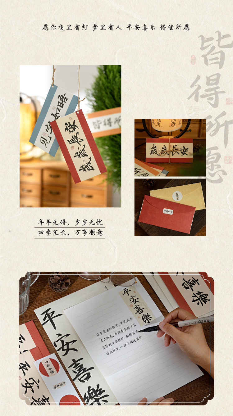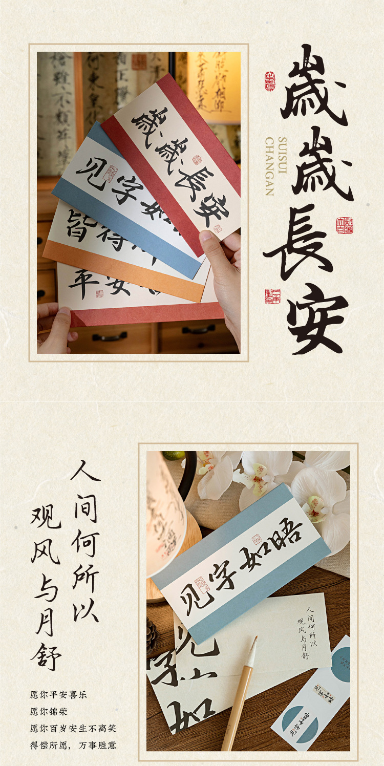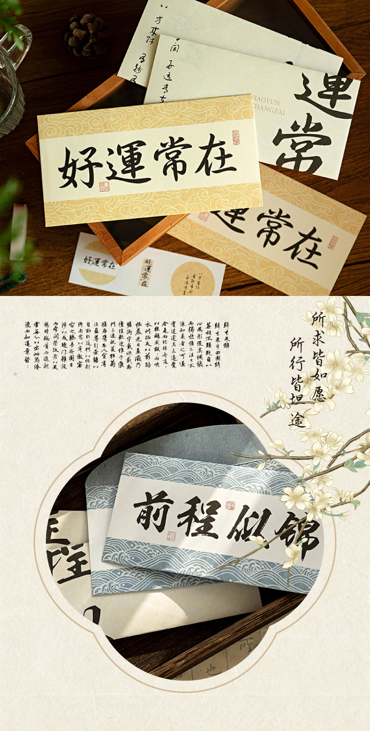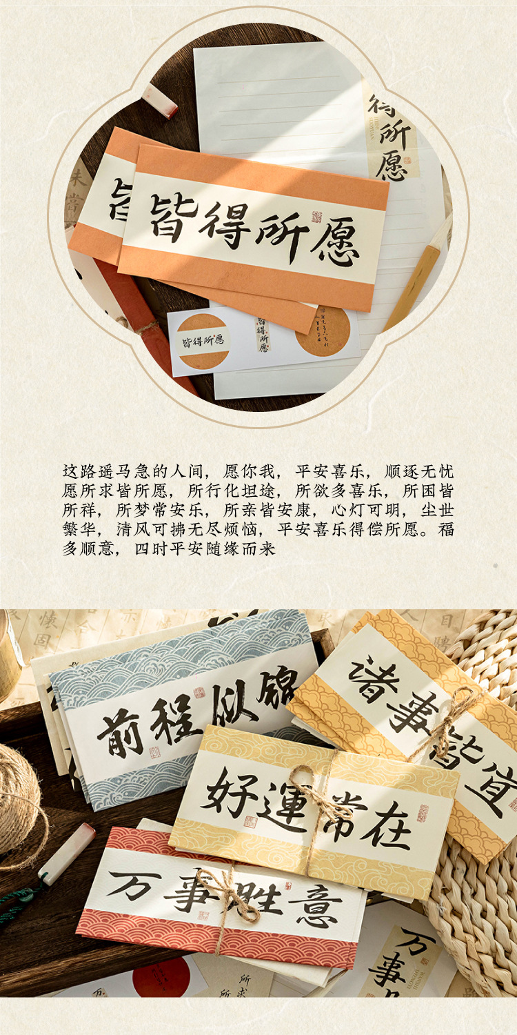Mo sobre Carta traje de papel palabras son como deseos serie estilo nacional caligrafía texto bendición mensaje Tarjeta 8
