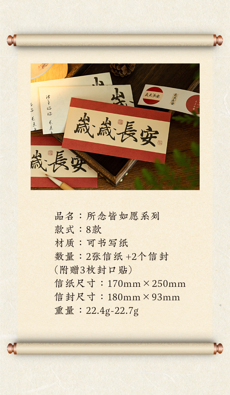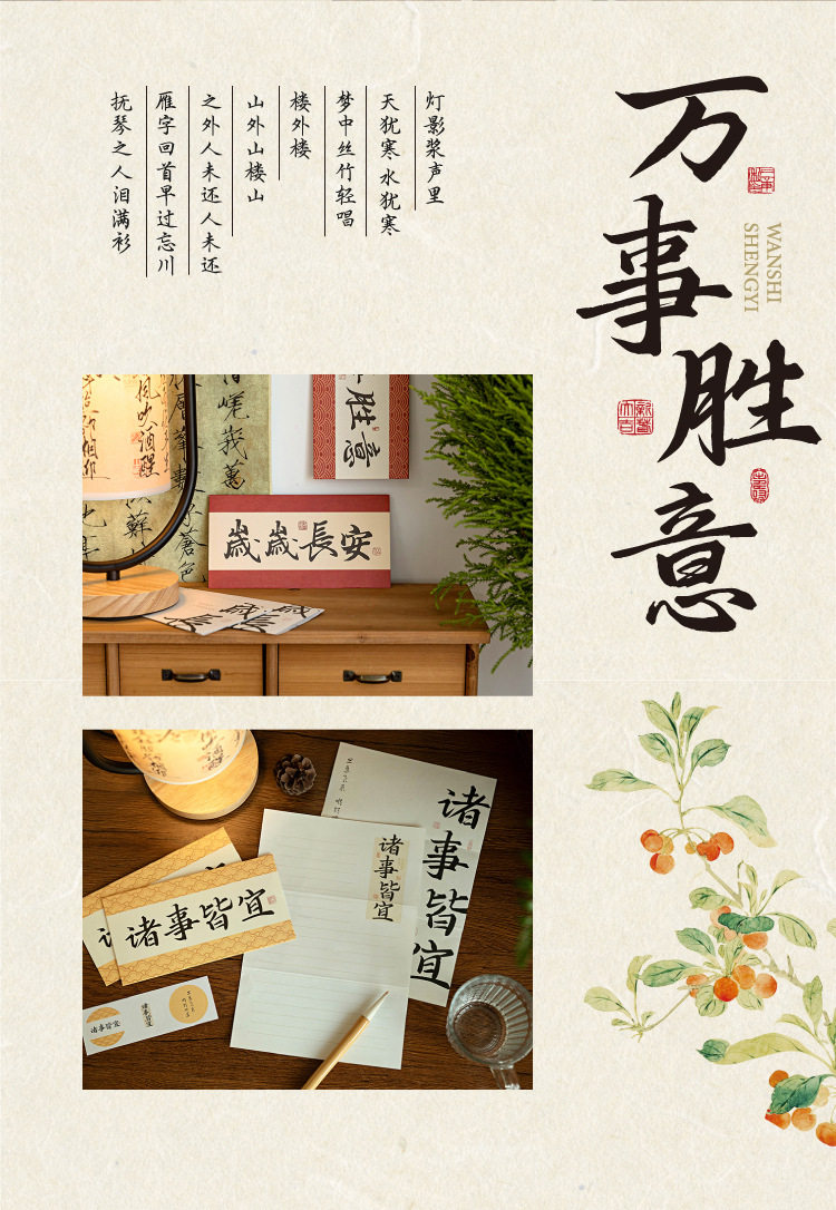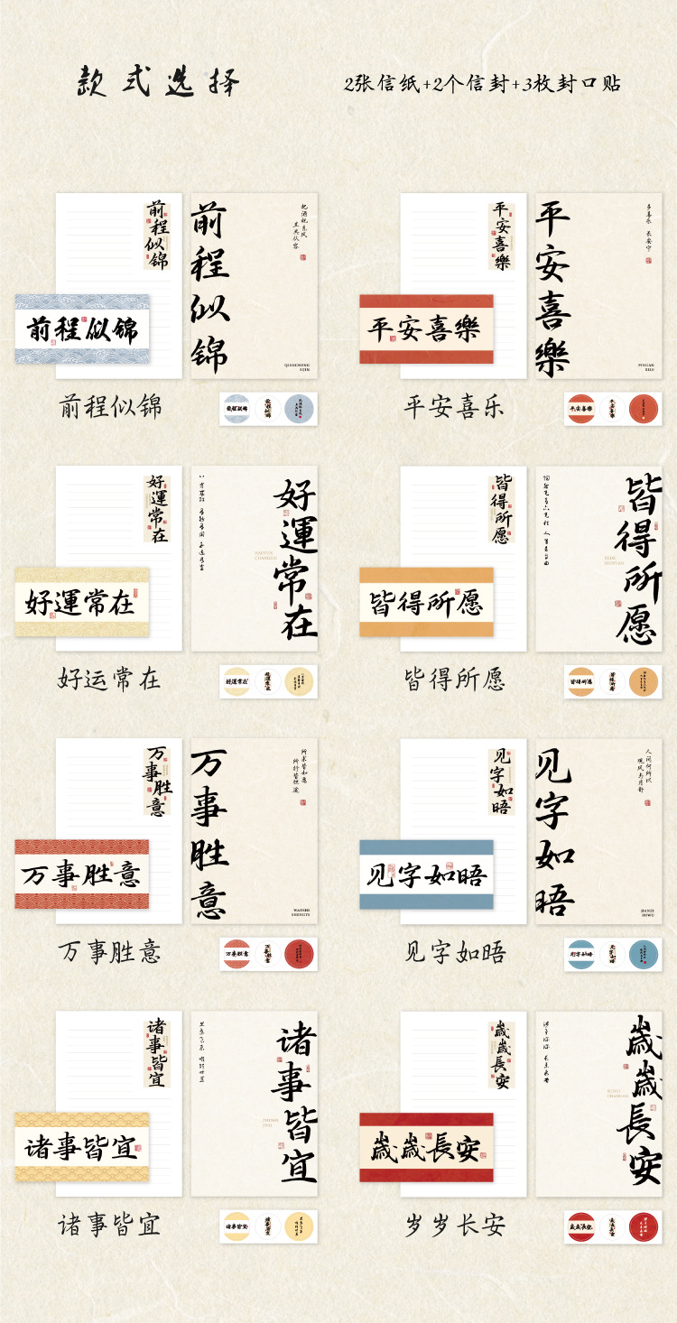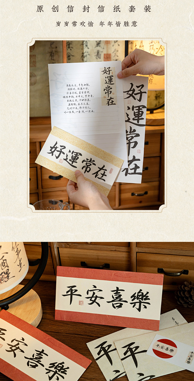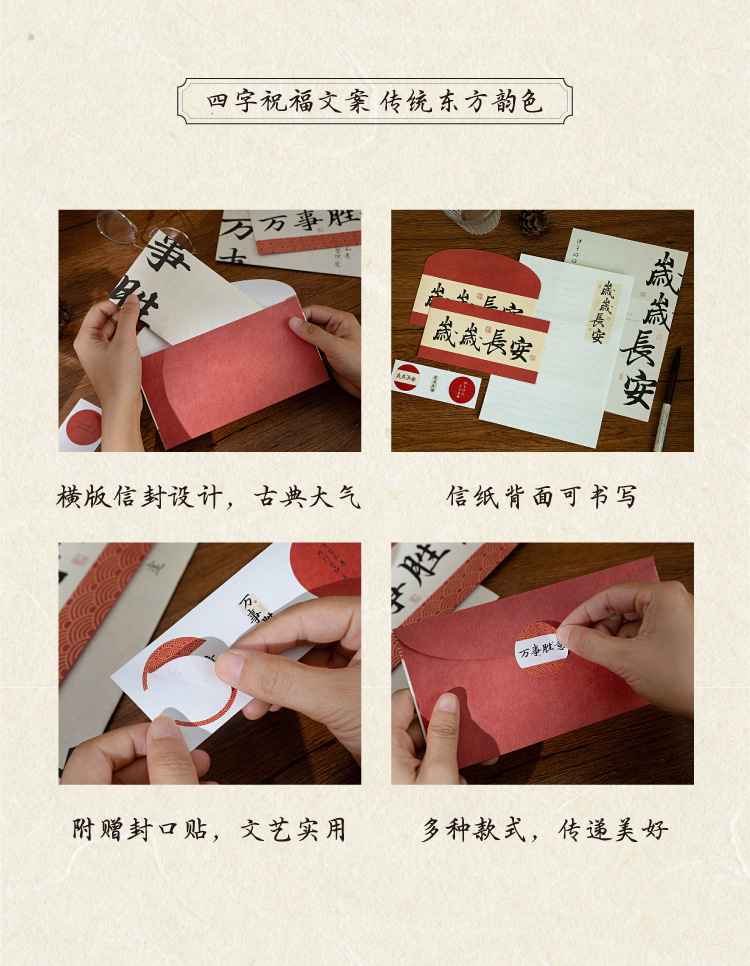 Mo sobre Carta traje de papel palabras son como deseos serie estilo nacional caligrafía texto bendición mensaje Tarjeta 8