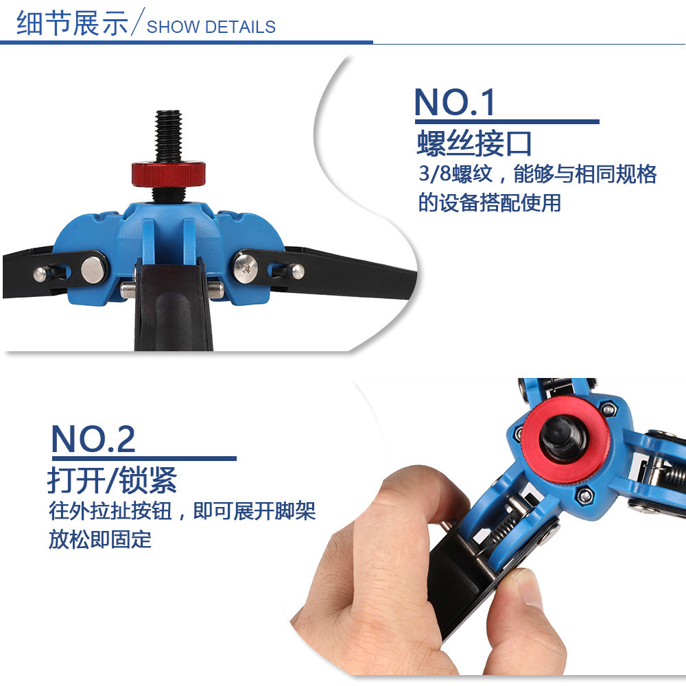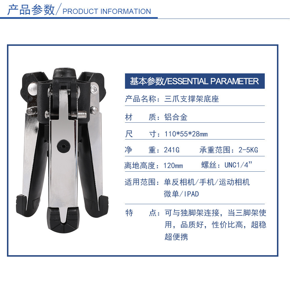 | Color | Trípode macro, conjunto de trípode boutique, soporte individual boutique, soporte de tres garras plateado 1 / 4, soporte de tres garras azules 3 / 8 |