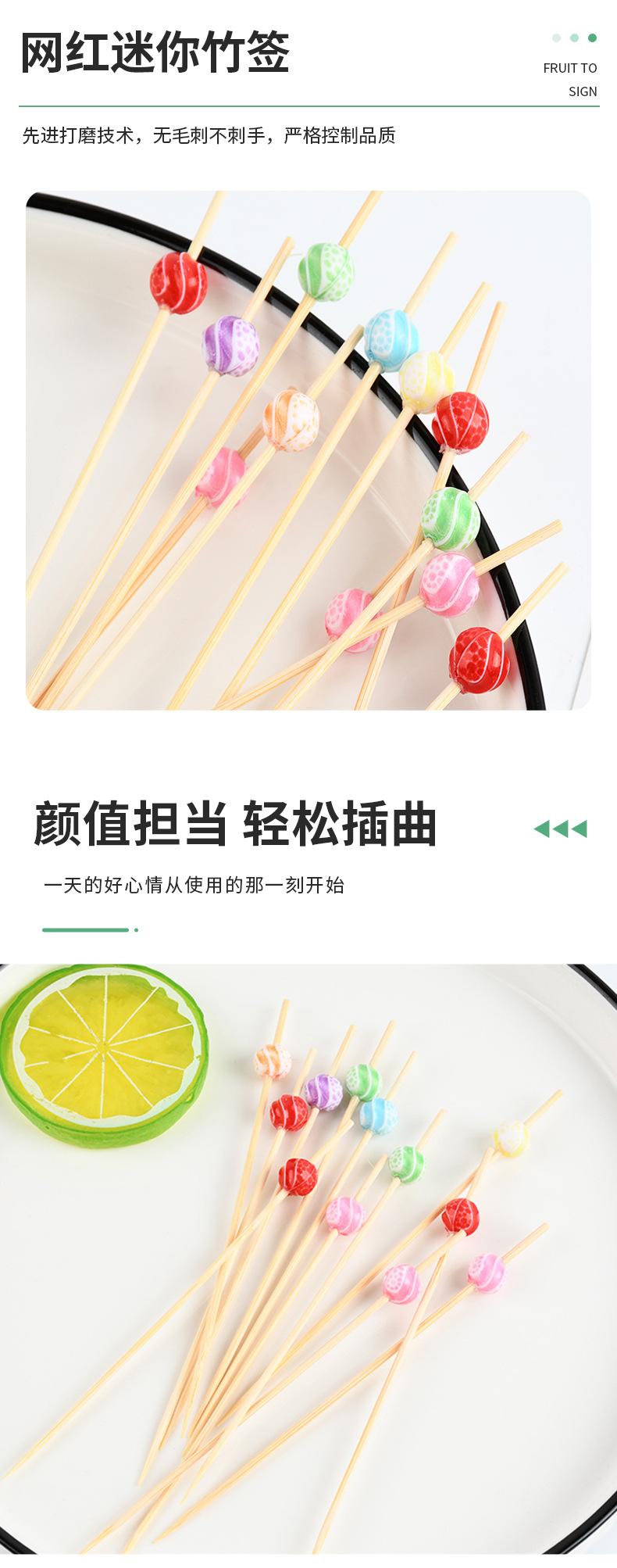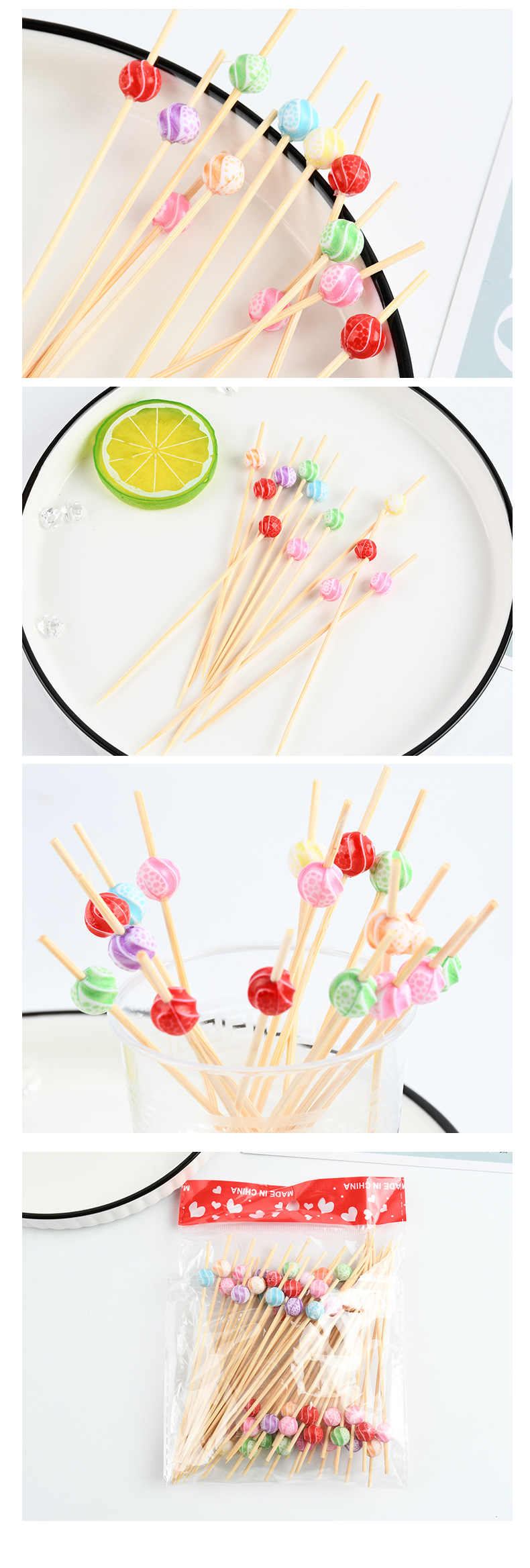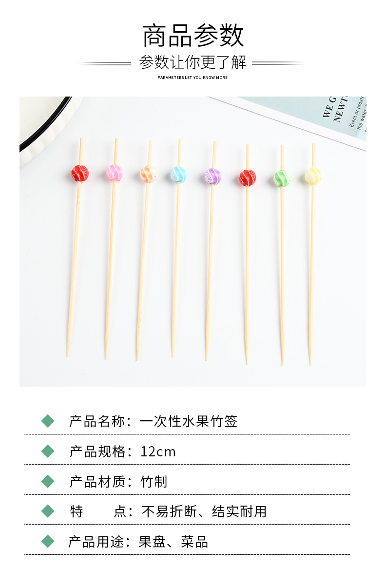 Suministro spot cuentas de color desechables horquilla de fruta de dibujos animados bocadillos de fruta palillos de dientes de arte string stick stick stick bambú