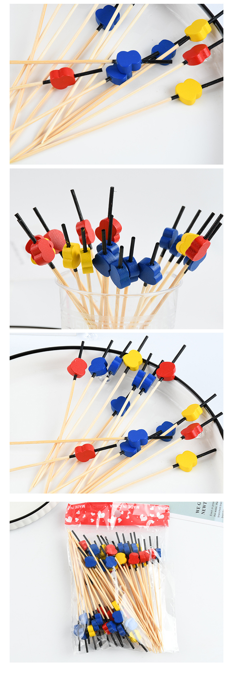 Tenedor de fruta desechable cuentas rojas barra de vino de bambú de lujo hamburguesas pastel de fruta tenedor de fruta creativo