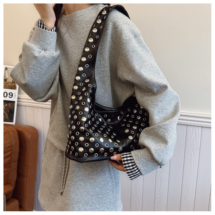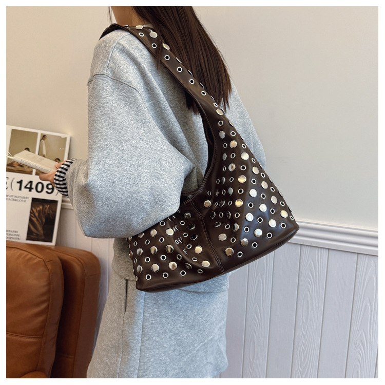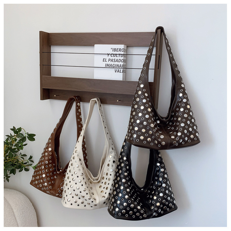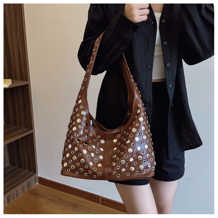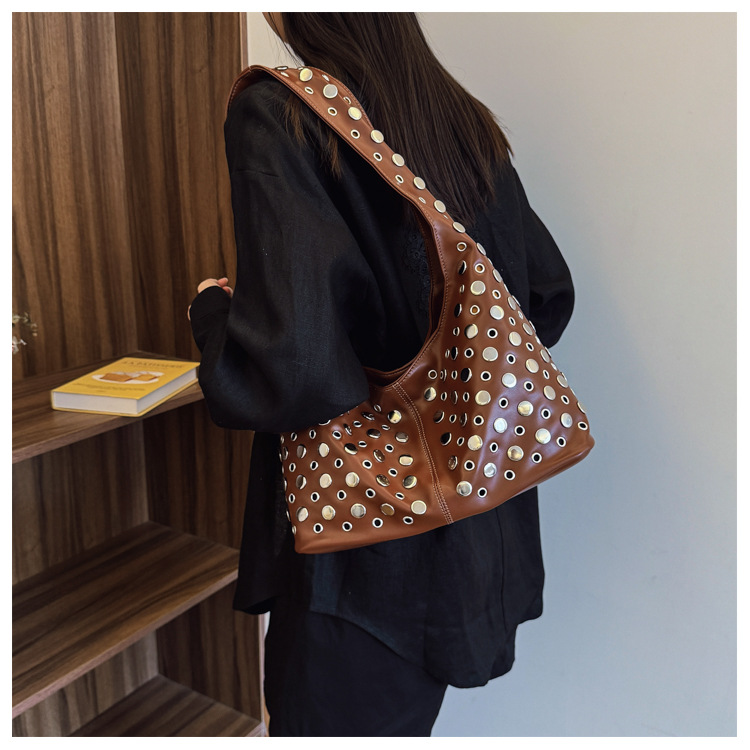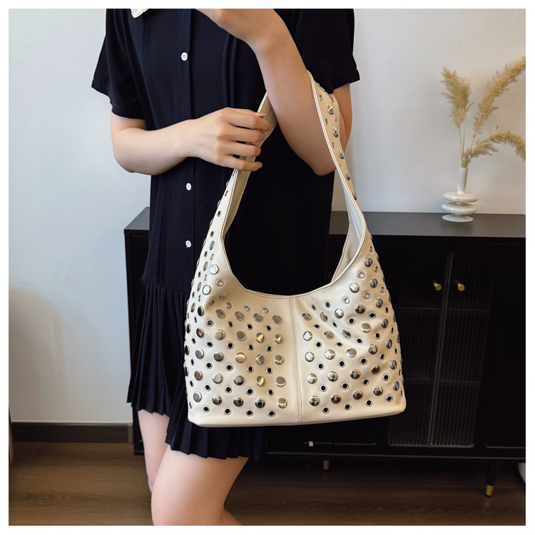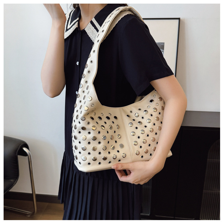 Bolso de axila retro estilo Hong Kong 2025 verano nuevo bolso femenino bolso de remache hueco bolso de hombro de gran capacidad personalizado