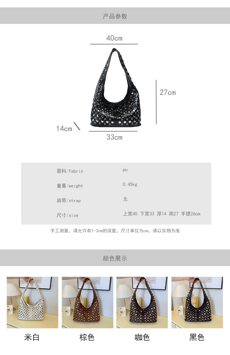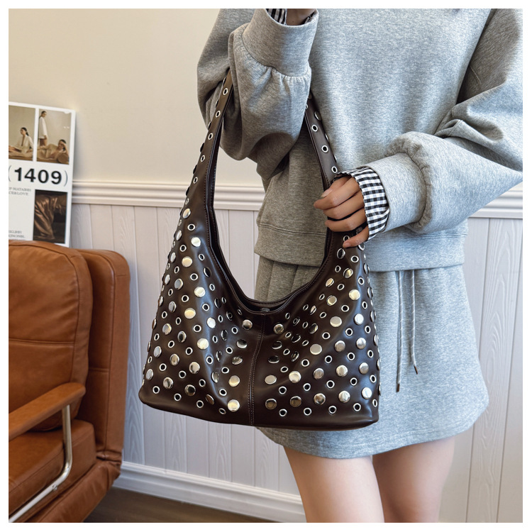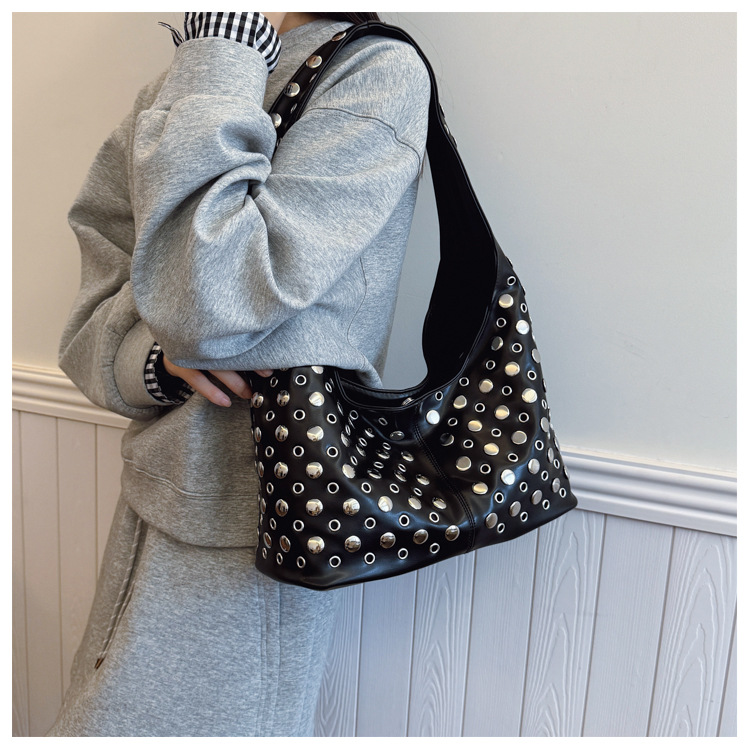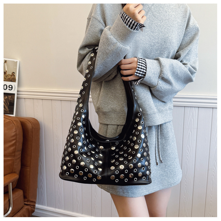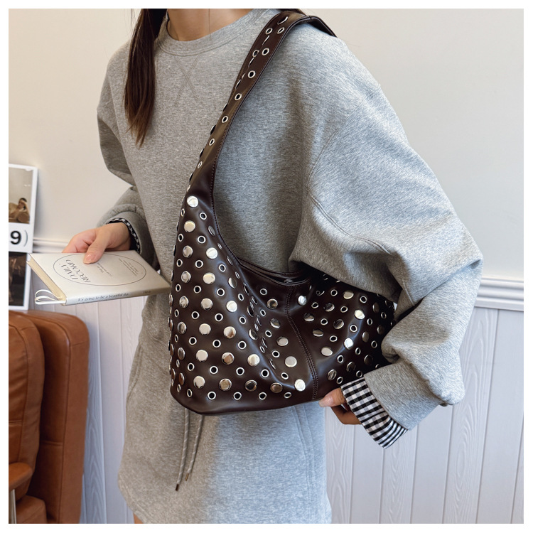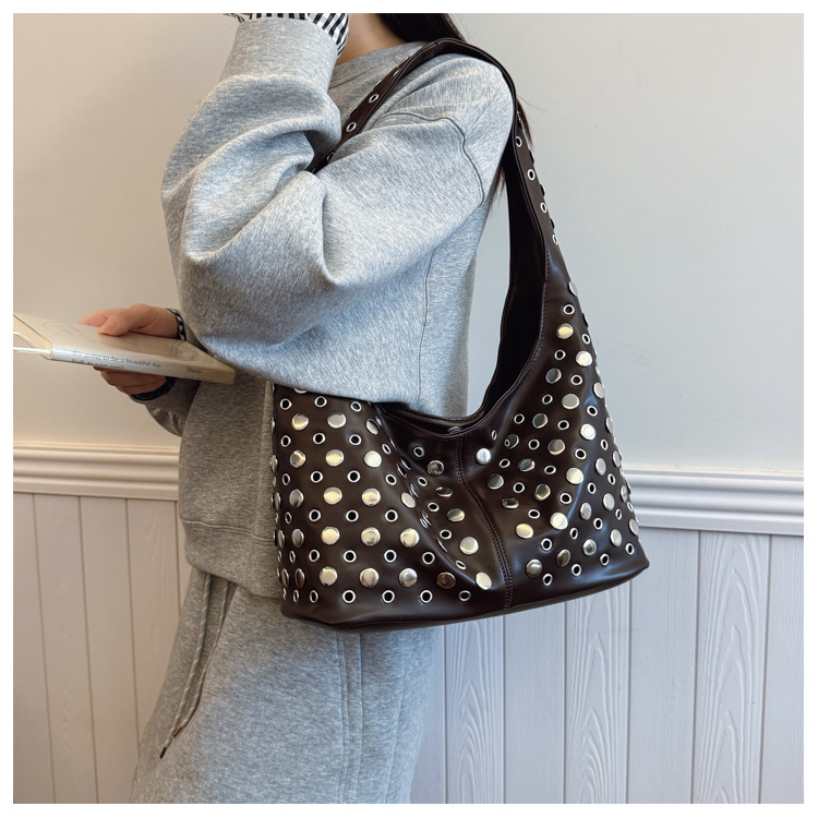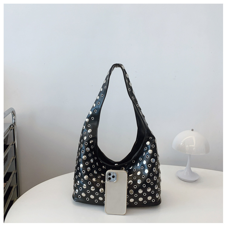 Bolso de axila retro estilo Hong Kong 2025 verano nuevo bolso femenino bolso de remache hueco bolso de hombro de gran capacidad personalizado