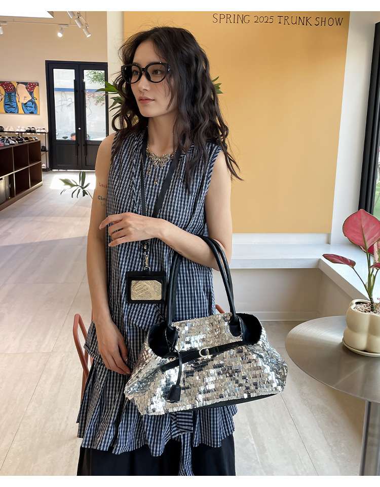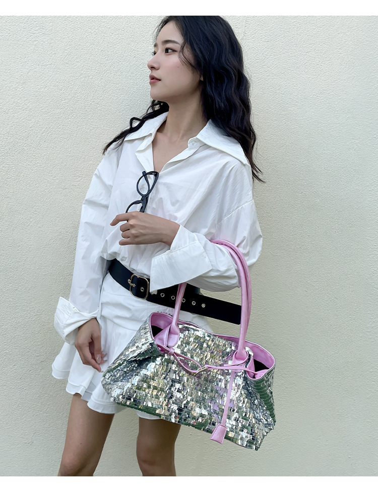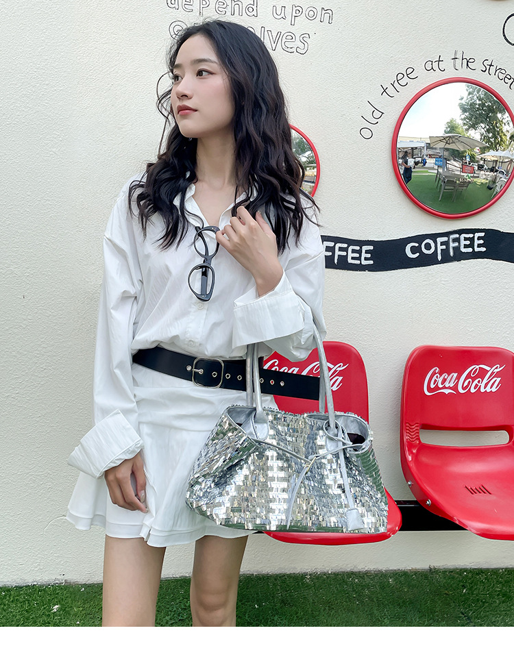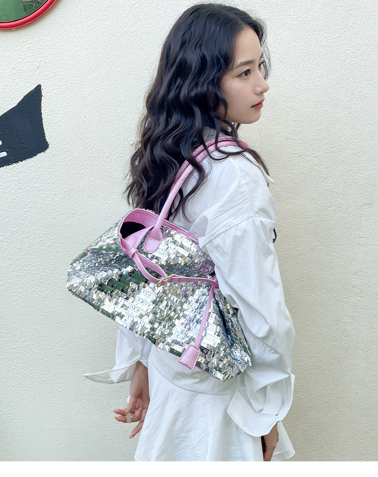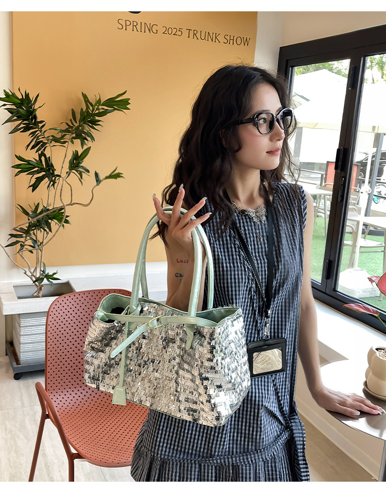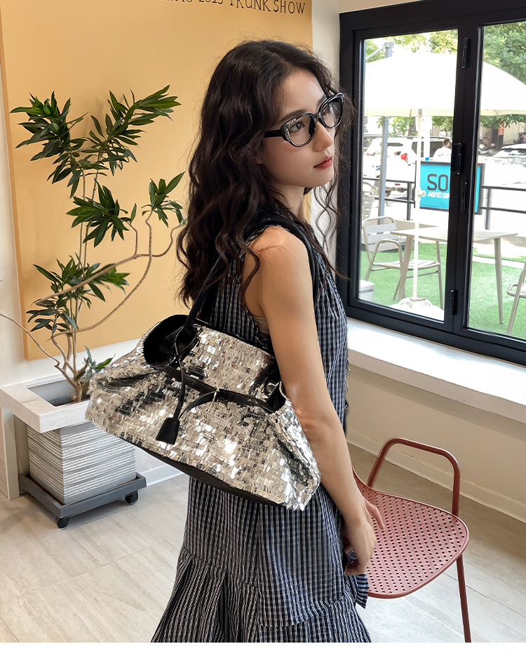 Bolso Tote de moda coreana 2025 verano nuevo bolso femenino estilo occidental bolso de lentejuelas moda bolso de hombro de gran capacidad