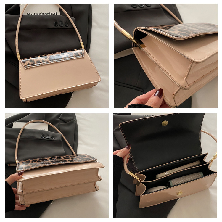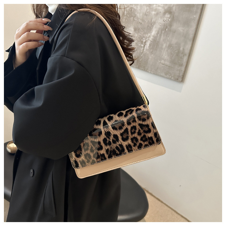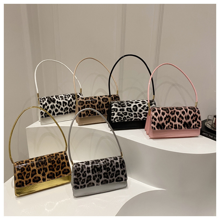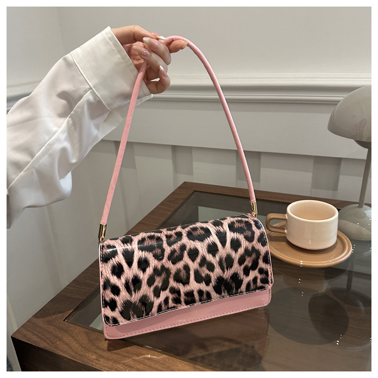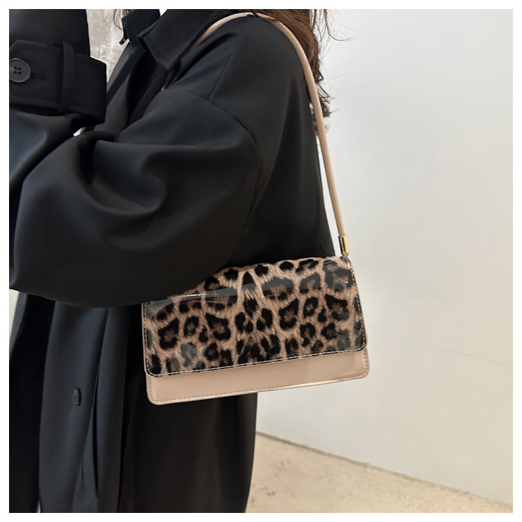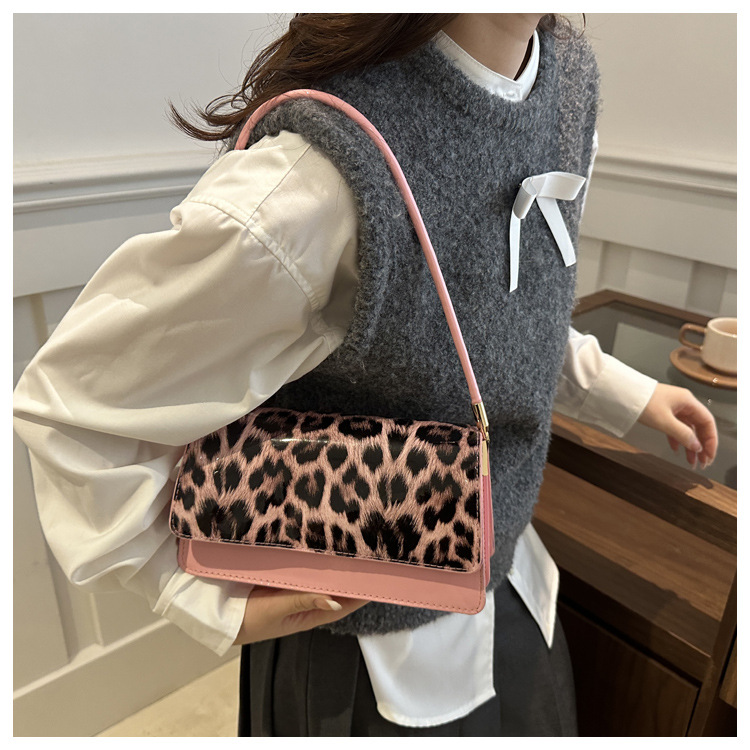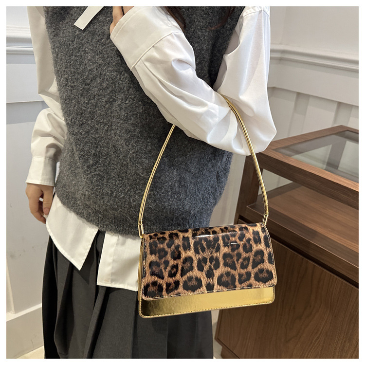 2024 moda nuevo estilo textura simple estampado de leopardo axila bolso cuadrado pequeño de mensajero portátil hombro axila bolso femenino