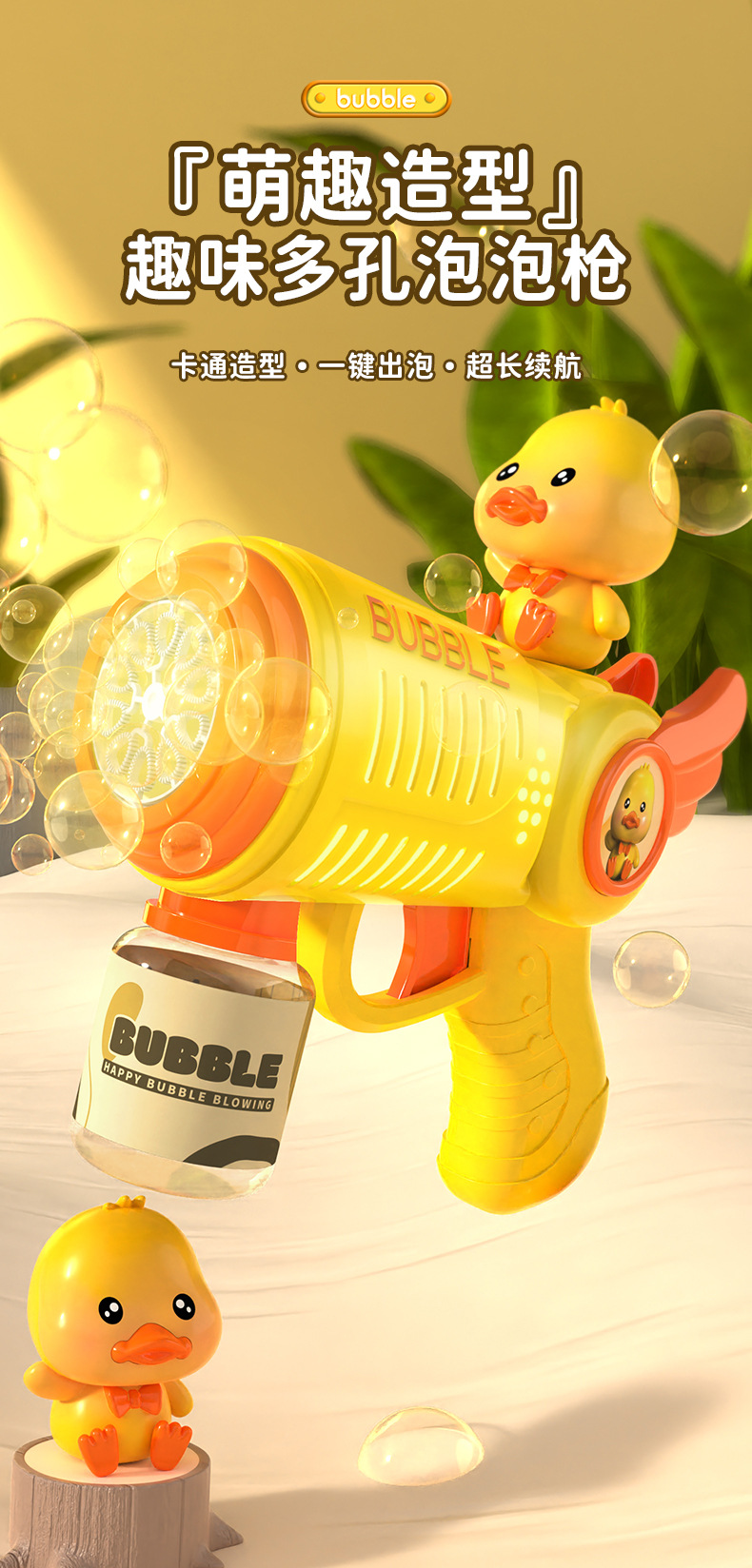 | 2 | Pistola de burbujas de pato amarillo explosivo, luz colorida y linda completamente automática, juguete de burbujas eléctrico de mano para niños que no gotea |