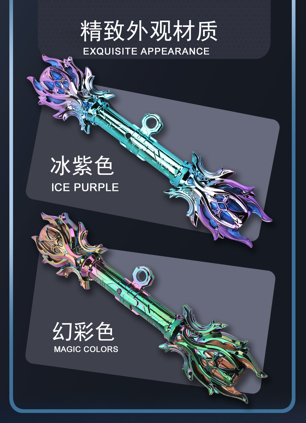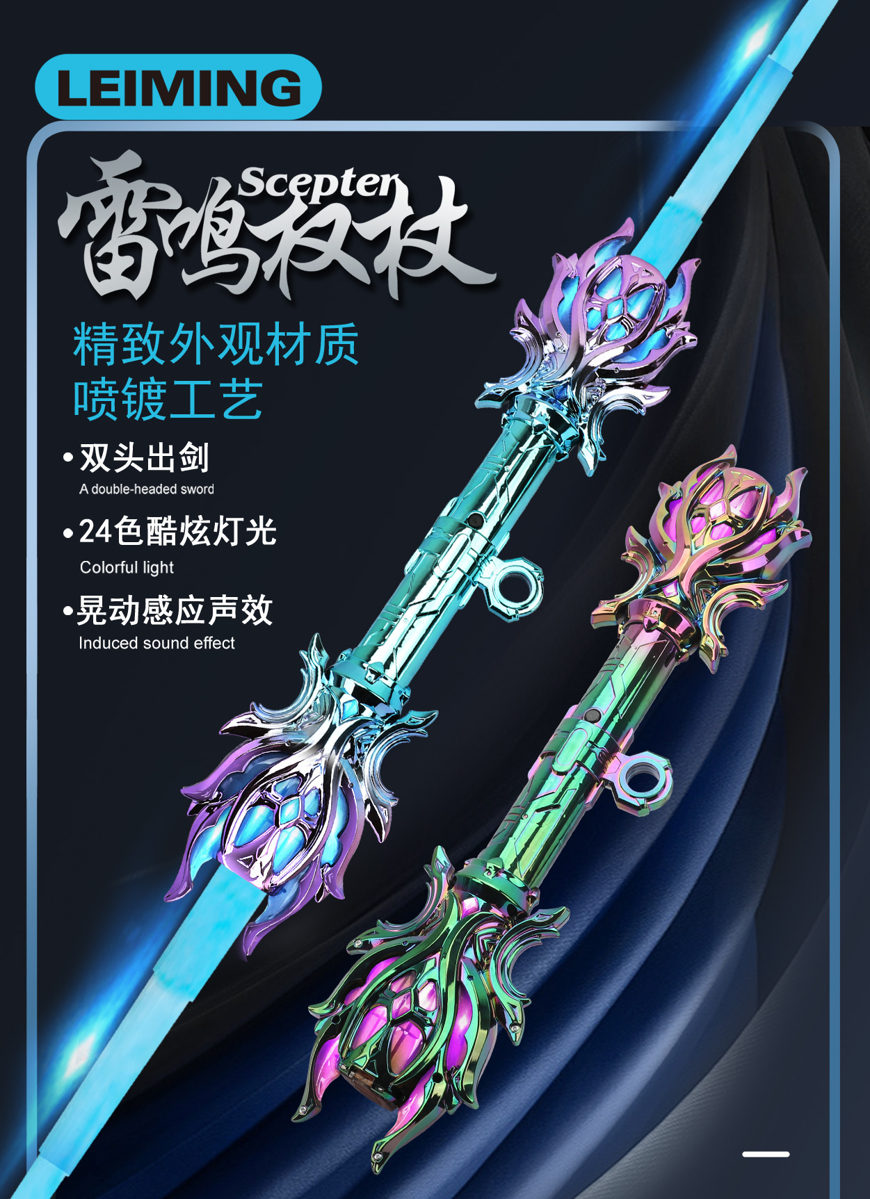 | Color | [mirando hacia atrás súper alto] doble cabeza trueno cetro color mágico, [belleza fría] doble cabeza trueno cetro hielo púrpura |