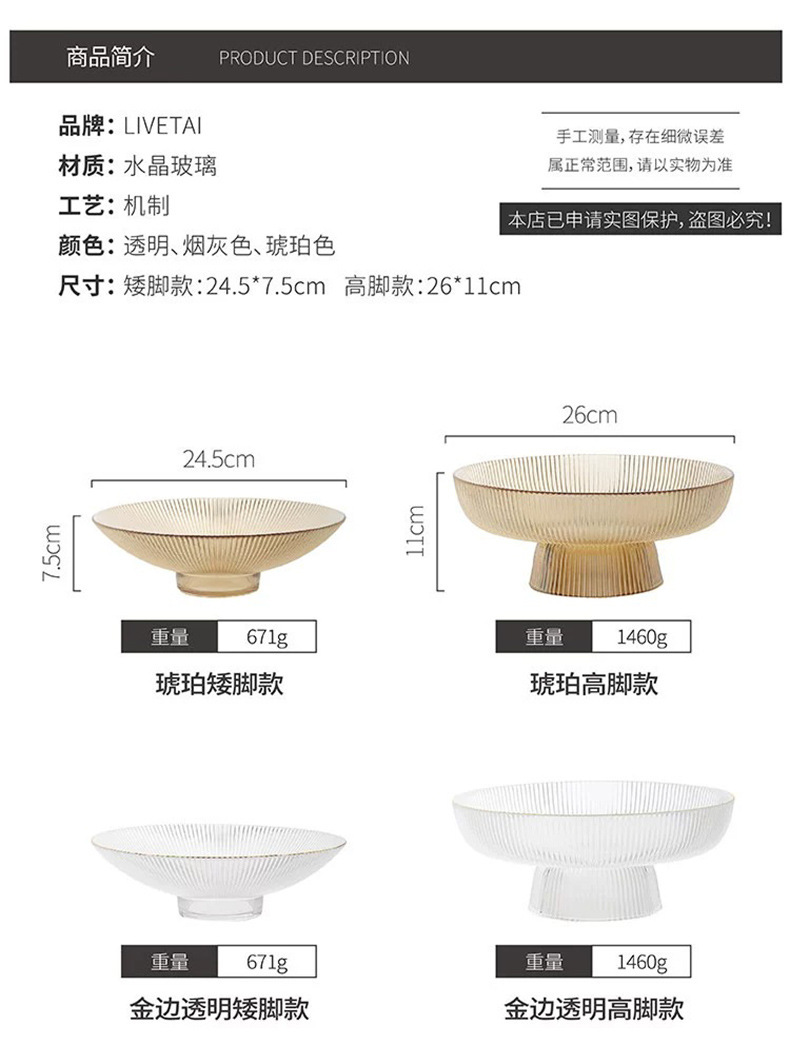 | Color | Bandeja de fruta transparente de pies altos, bandeja de fruta transparente de pies bajos, bandeja de fruta de pies altos de oro, bandeja de fruta de pies bajos de oro, bandeja de fruta de pies altos de hollín, bandeja de fruta de pies bajos de hollín, bandeja de fruta de pies altos de ámbar, bandeja de fruta de pies bajos de ámbar |