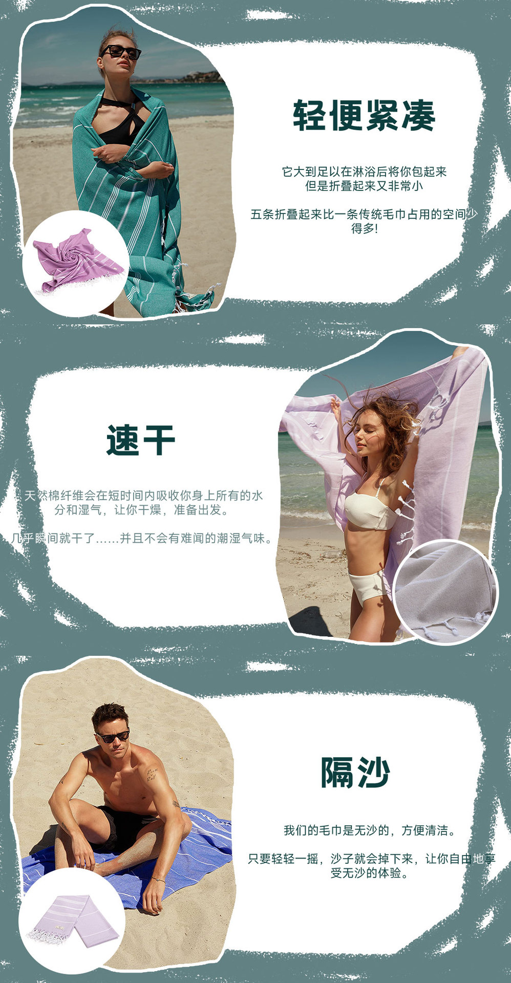 Toallas transfronterizas absorbentes gran tamaño toallas de baño de punto rayas bordadas toallas de playa turcas algodón al por mayor