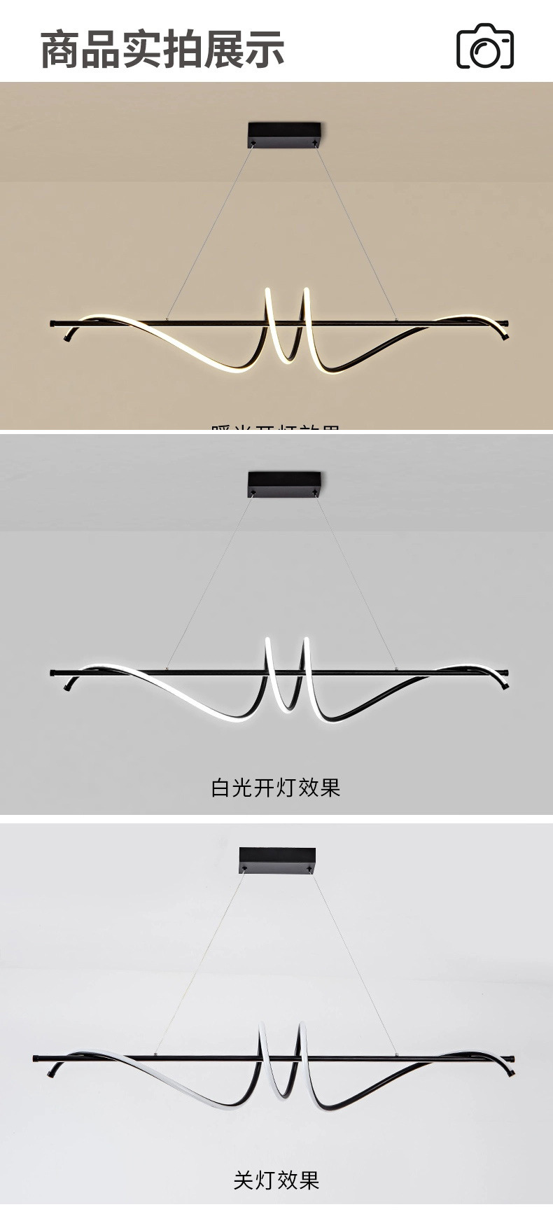 | Color de la luz | Lámpara de restaurante Negro - 100cm 48w, lámpara de restaurante dorado - 100cm 48w, lámpara de restaurante blanco - 100cm 48w, lámpara de restaurante Negro - 120cm 60w, lámpara de restaurante dorado - 120cm 60w, lámpara de restaurante blanco - 120cm 60w, lámpara de restaurante Negro - 150cm, lámpara de restaurante dorado - 150cm, lámpara de restaurante blanco - 150cm |