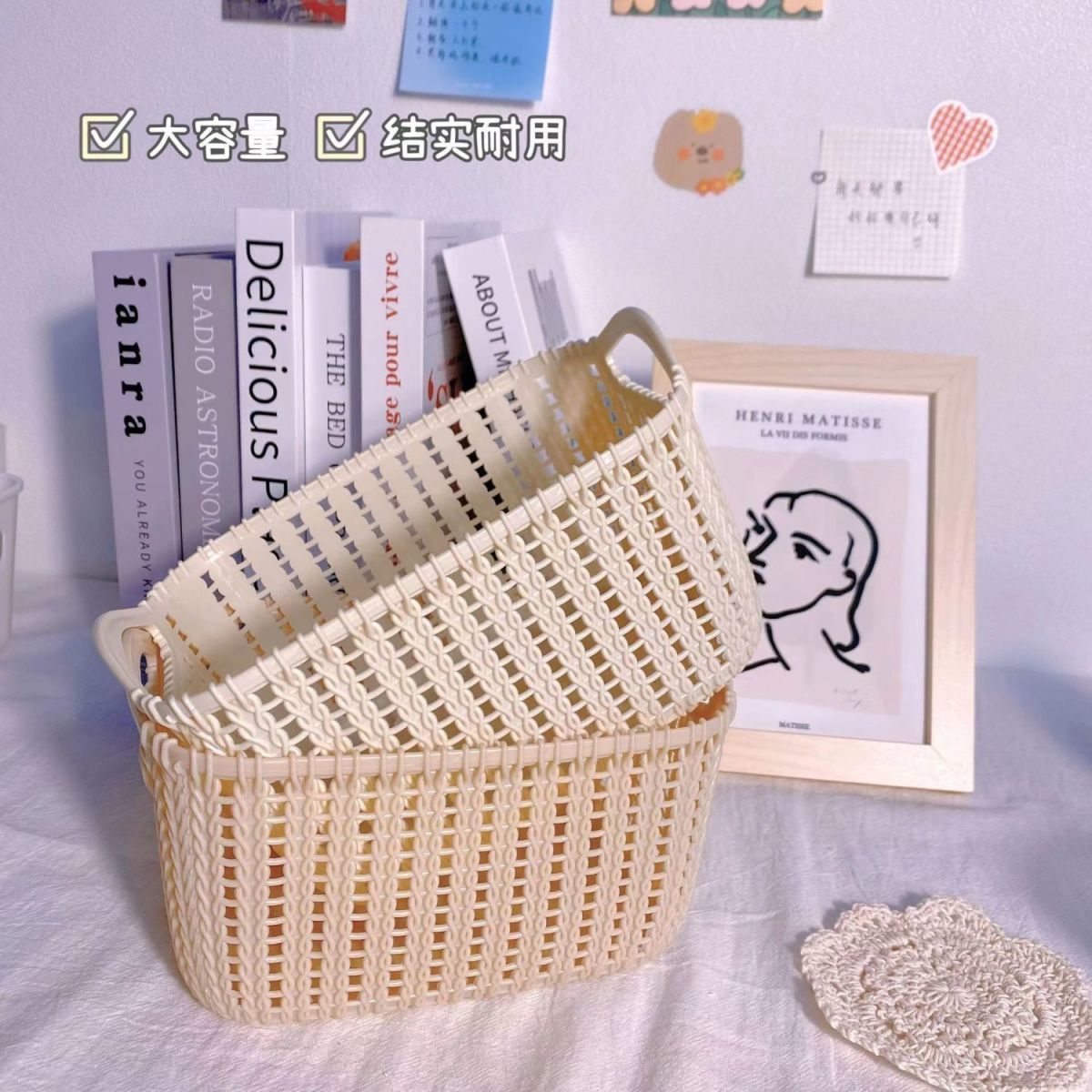 Cesta de almacenamiento de caña de imitación, snack, juguetes, cestas de almacenamiento de ropa portátil, cestas de almacenamiento de escritorio de plástico