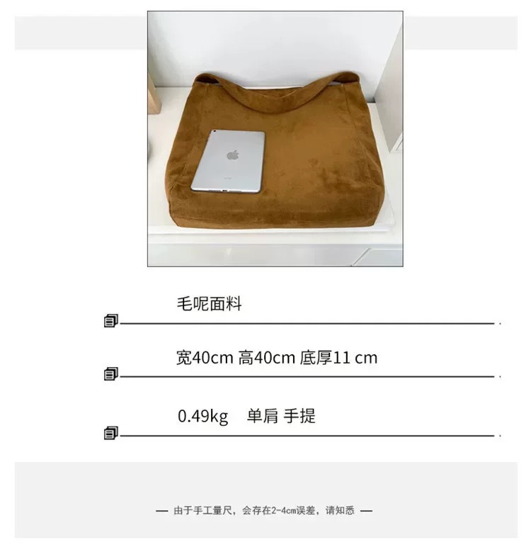 Bolso de hombro simple de diseño de nicho coreano para damas 2024 invierno nuevo bolso de moda de gran capacidad retro