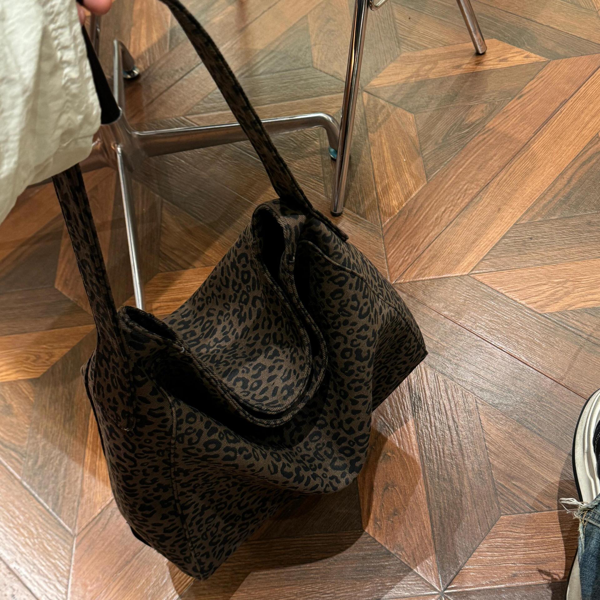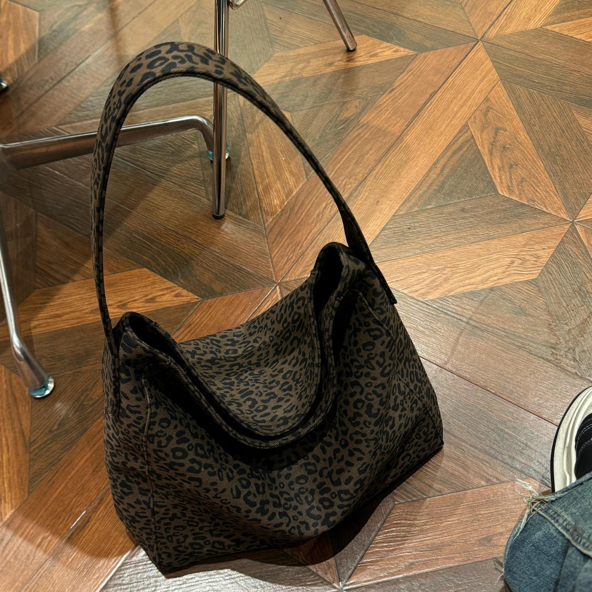 Bolso con estampado de leopardo para mujer de gran capacidad 2025 nuevo otoño e invierno bolso de compras de un solo hombro de lona salvaje