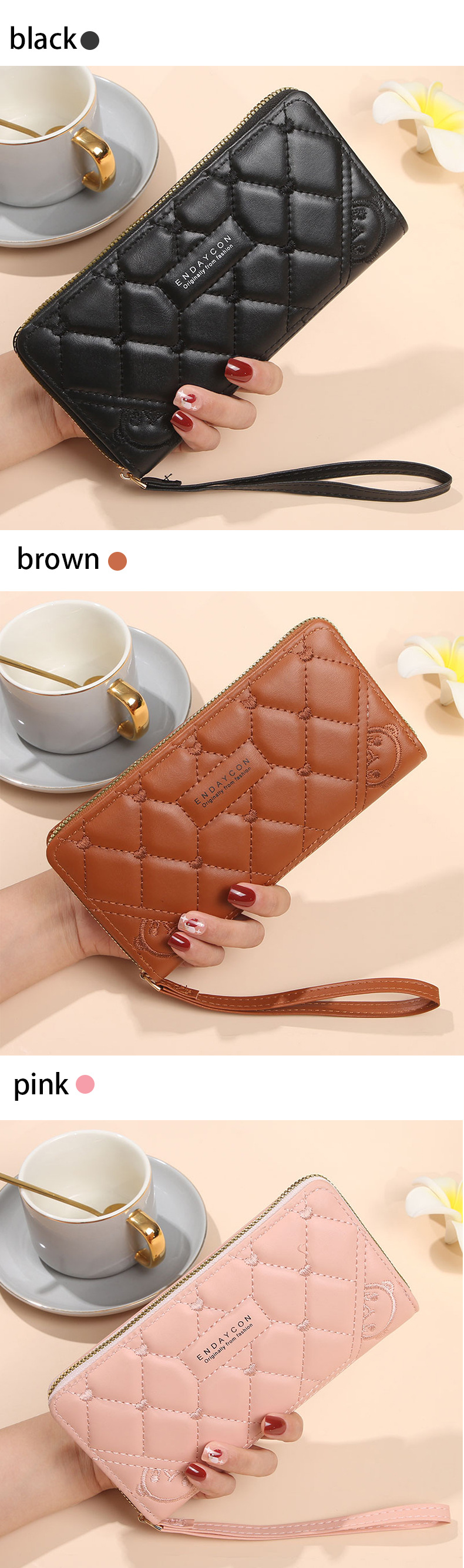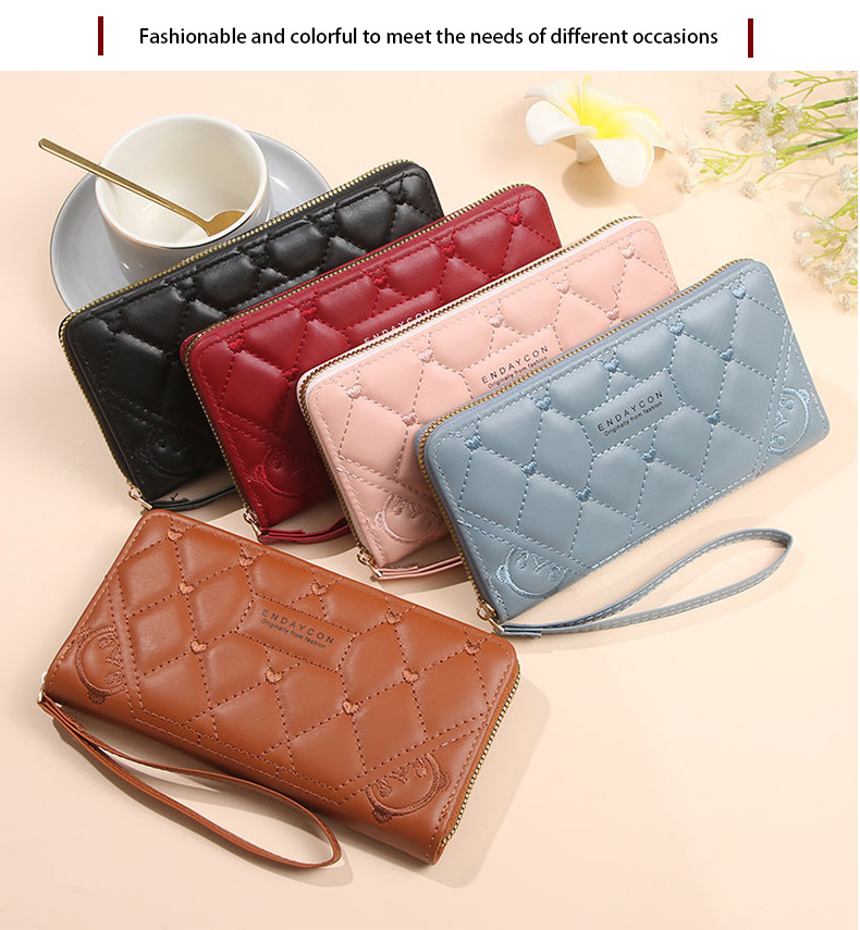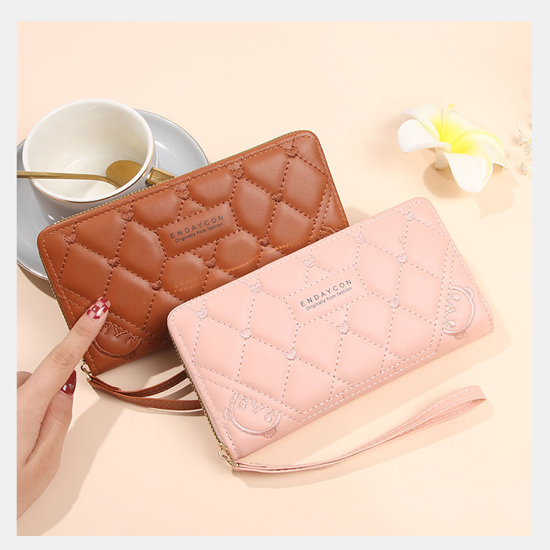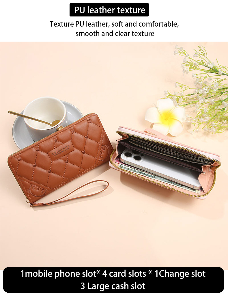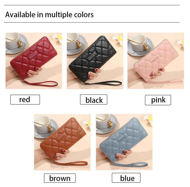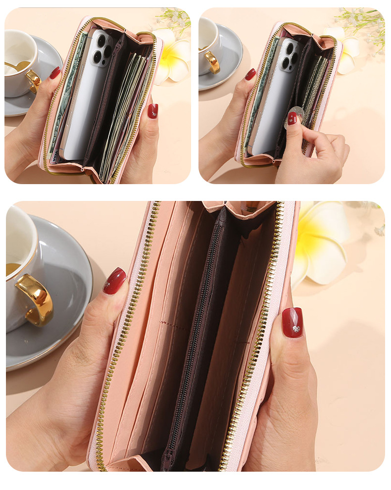 2025 nueva billetera para mujer, tarjetero largo de color sólido, fabricante de origen del embrague con cremallera transfronteriza de alta gama para mujer