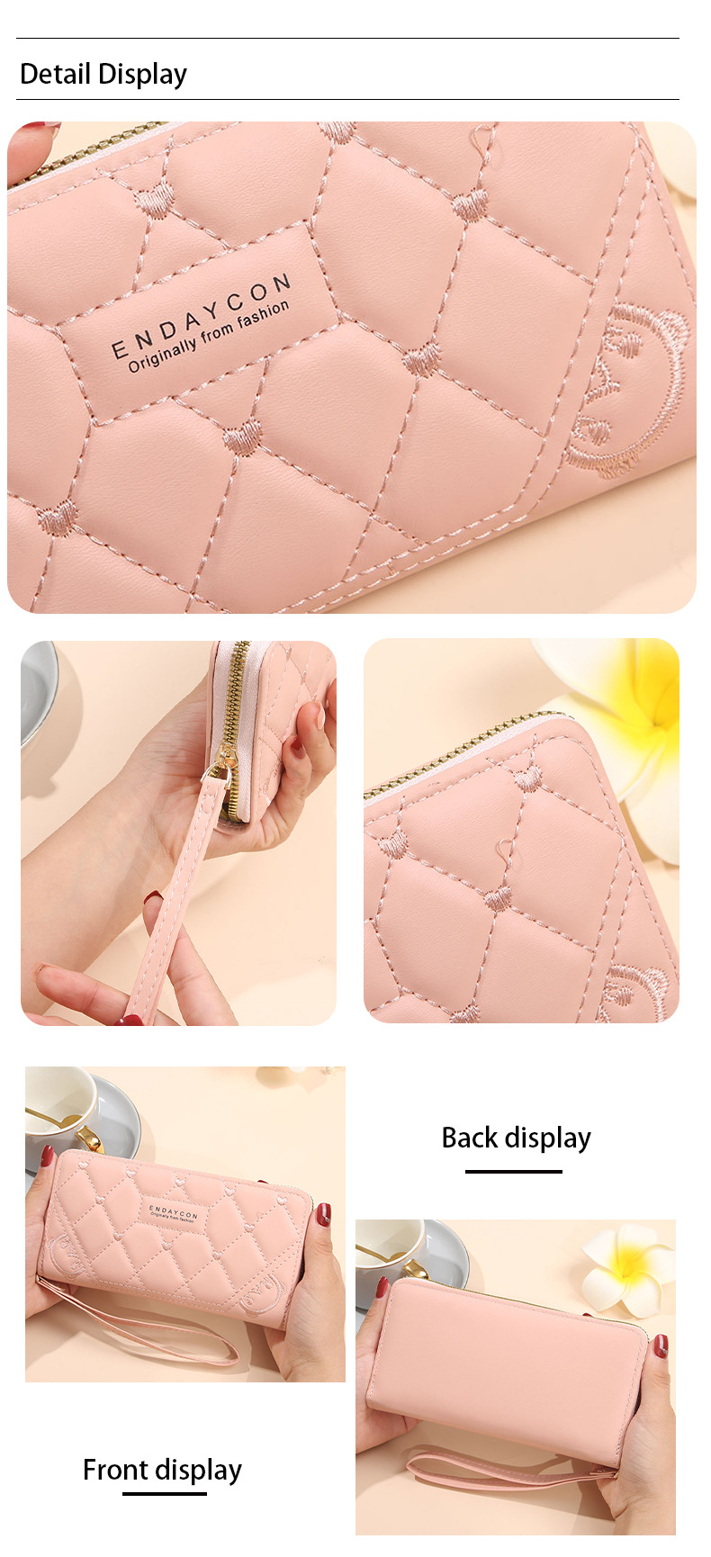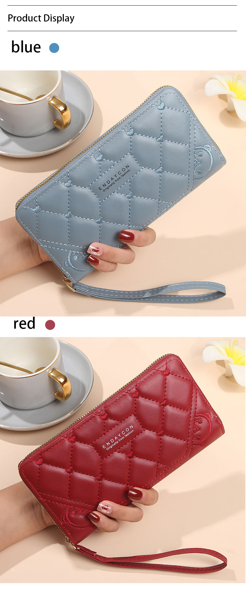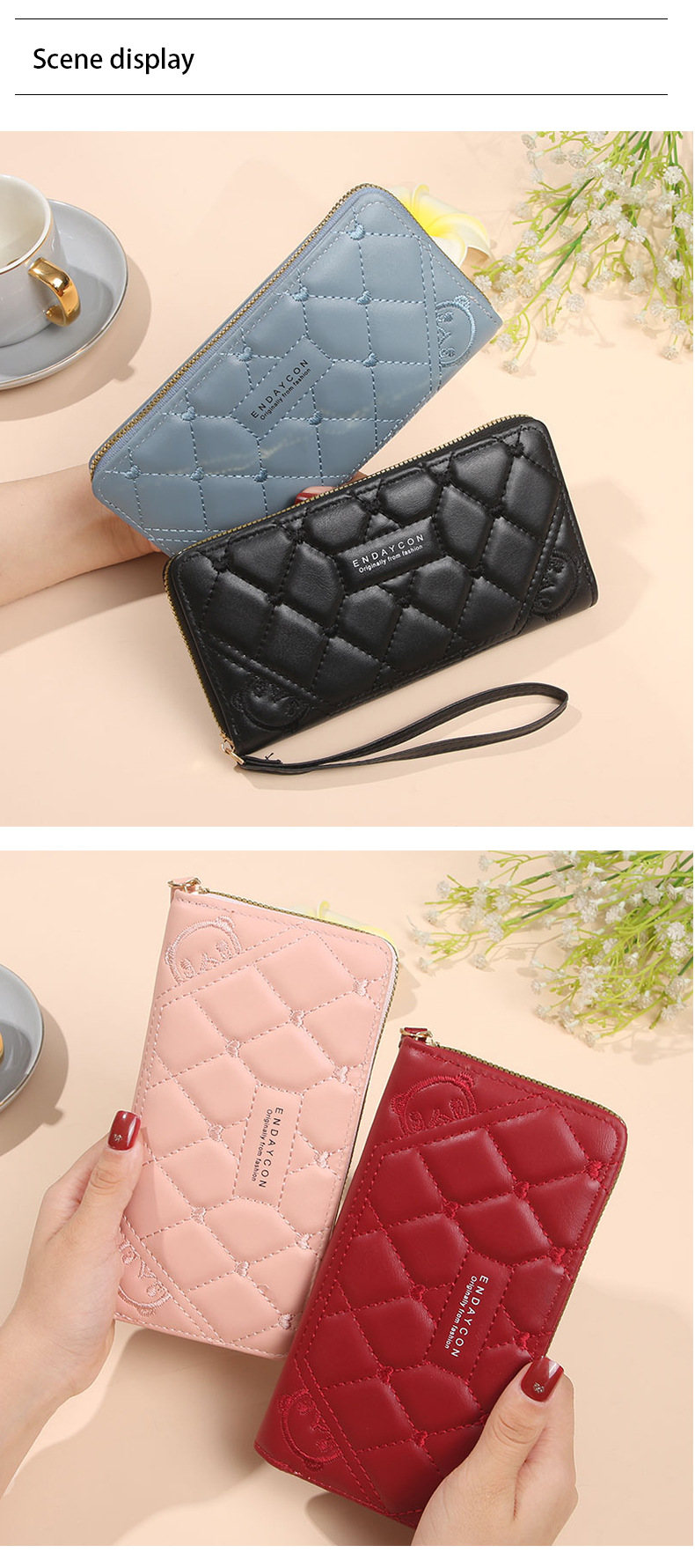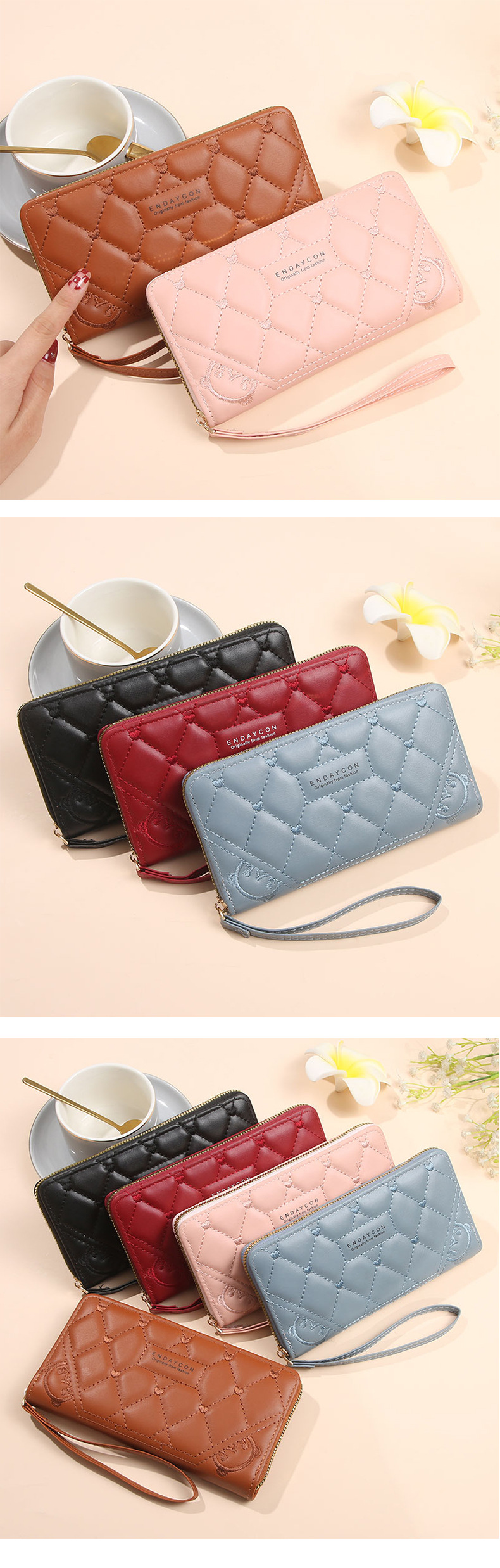 2025 nueva billetera para mujer, tarjetero largo de color sólido, fabricante de origen del embrague con cremallera transfronteriza de alta gama para mujer