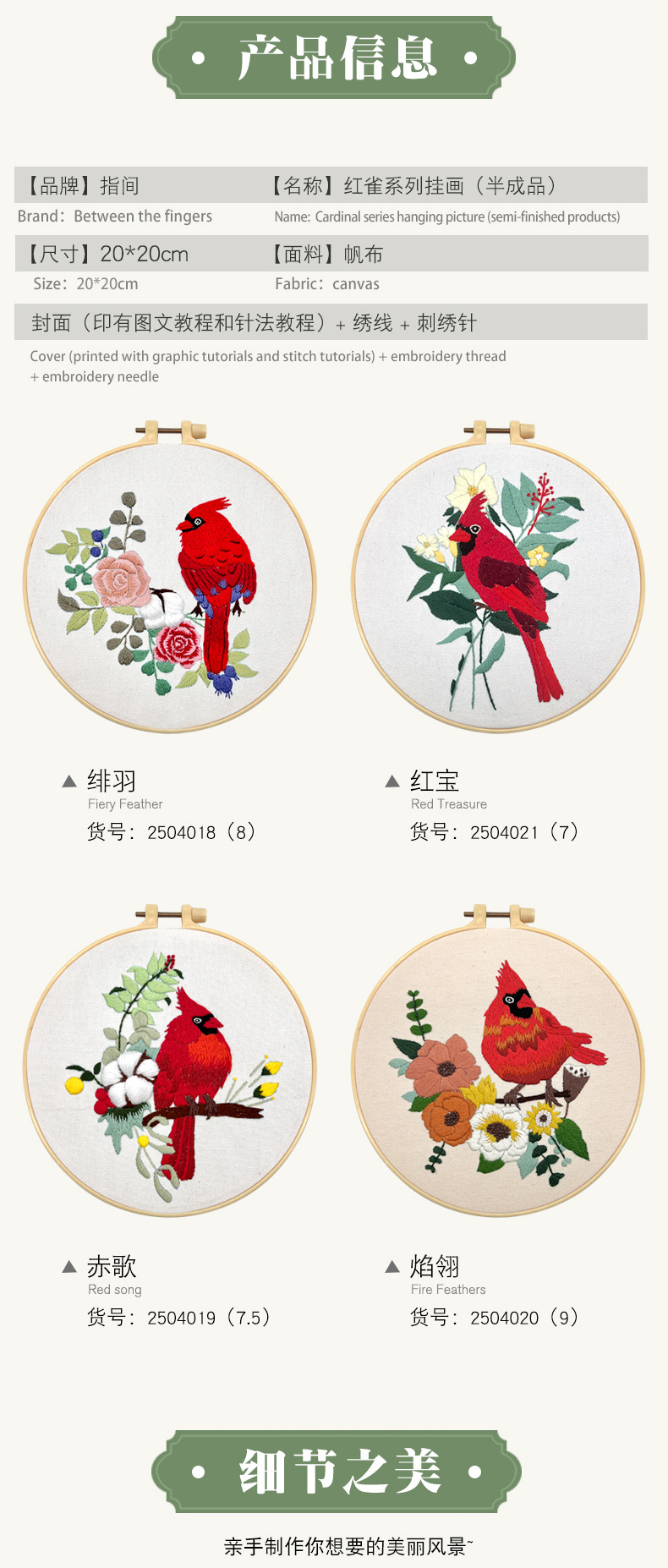 | Colores | Pinturas colgantes de Cardenales-Hongbao (productos no terminados),Pinturas colgantes de cardenales-Feather (productos no terminados),Pinturas colgantes de Cardenales-Canción roja (productos no terminados),Pinturas colgantes de Cardinal-Flame Ling (productos no terminados),Juego de 4 combinaciones (Red Treasure Fei Yu Chi Ge Yan Ling) enhebrador de flores de tijeras en polvo |
