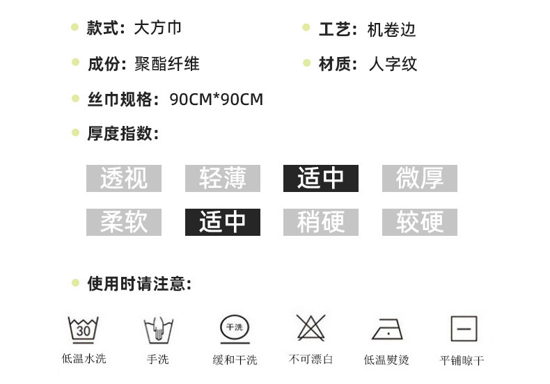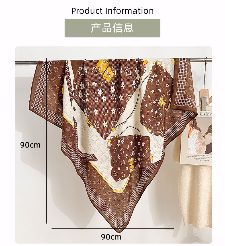 | Estilo | Versátil, elegante, moda OL, Europa y América, lujo ligero, estilo chic, sentido de alta calidad Pañuelo cuadrado |