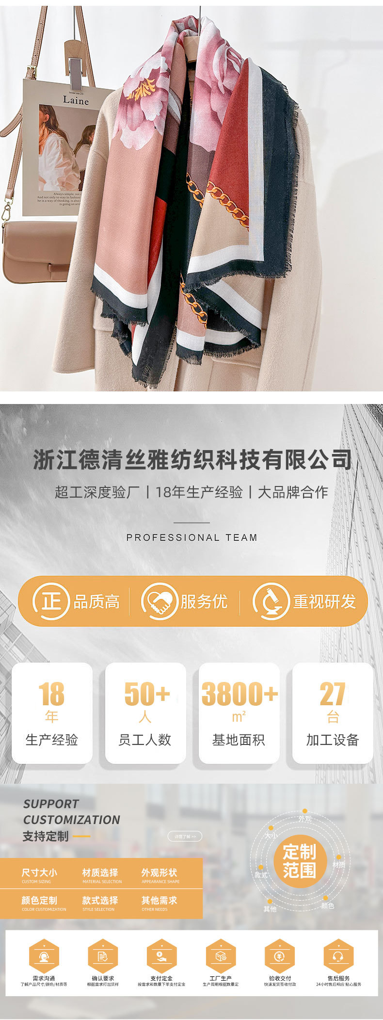 | Estilo | Versátil, elegante, elegante OL, simple, europeo y americano, lujo ligero, estilo chic, sentido de alto nivel Pañuelo cuadrado |