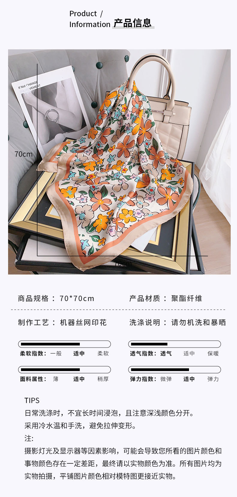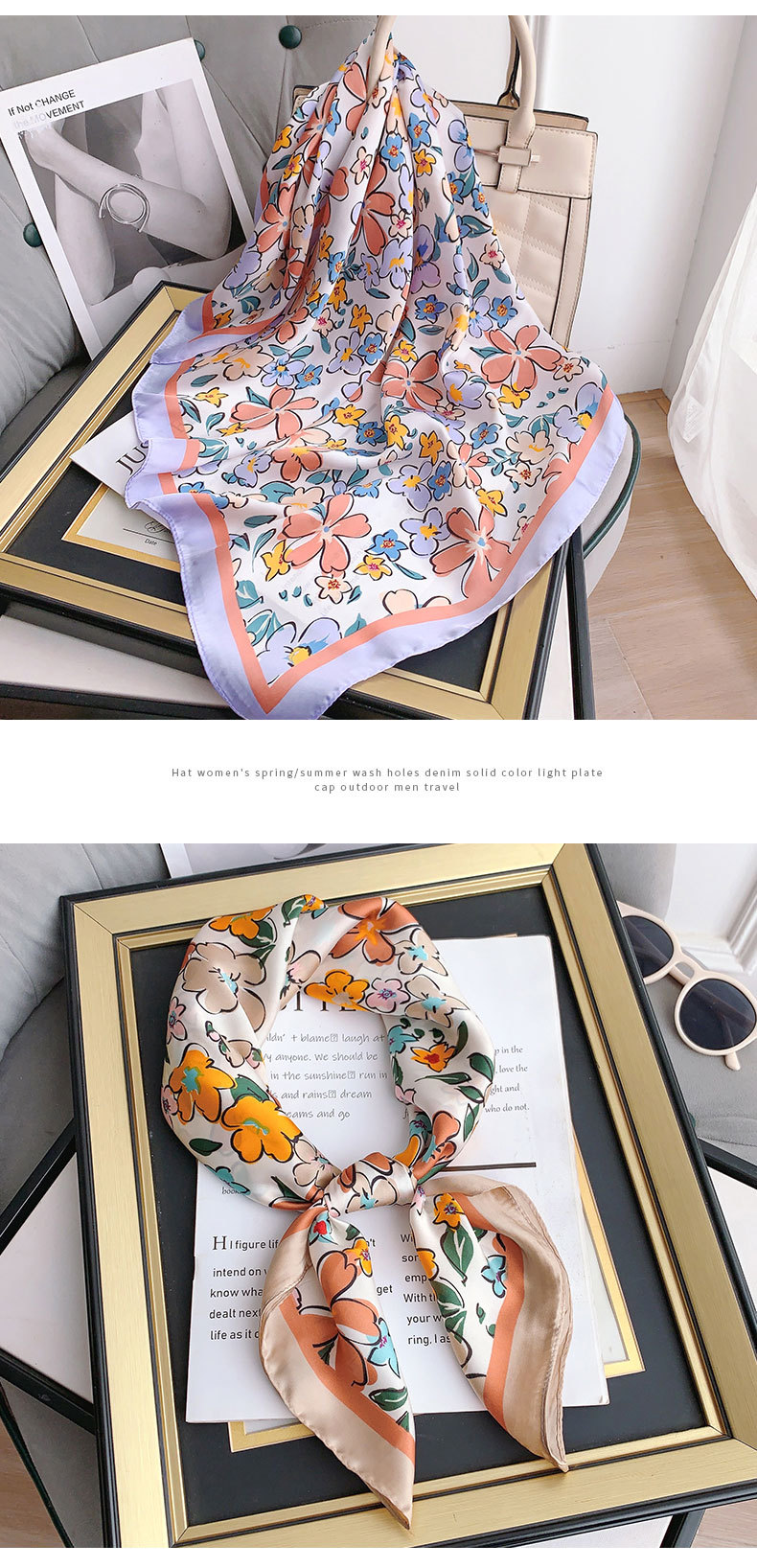 | Estilo | Versátil, elegante, casual, moda ol, Europa y los Estados unidos, estilo de lujo ligero, estilo chic, sentido avanzado Pequeña toalla cuadrada |