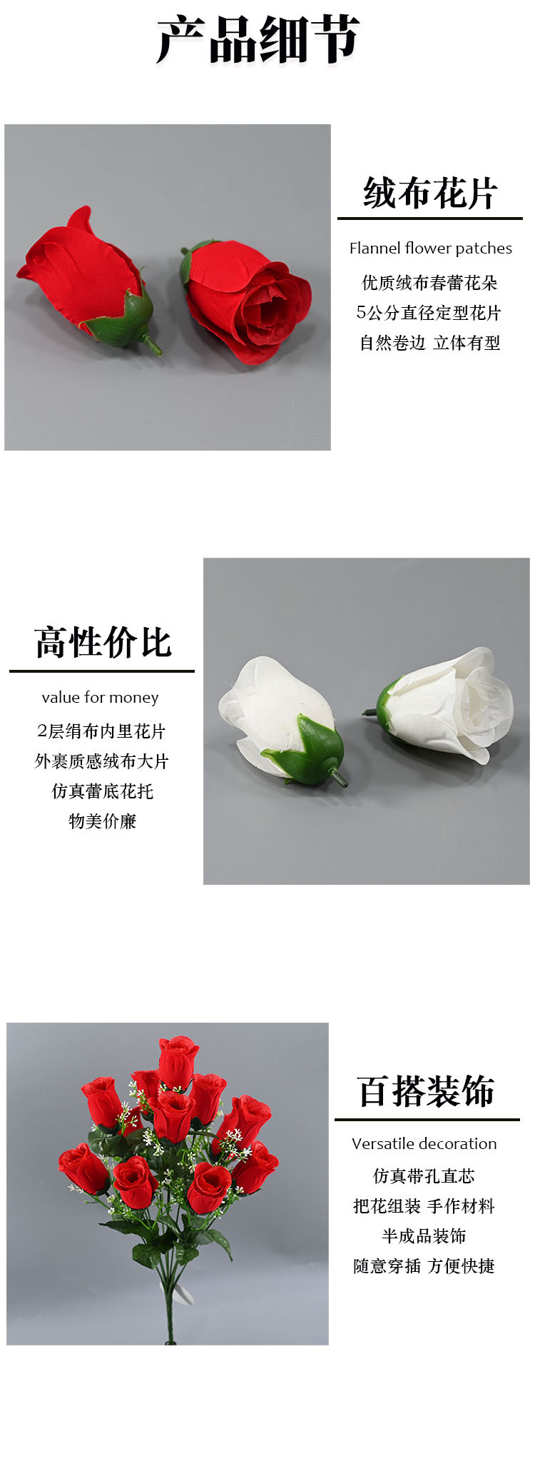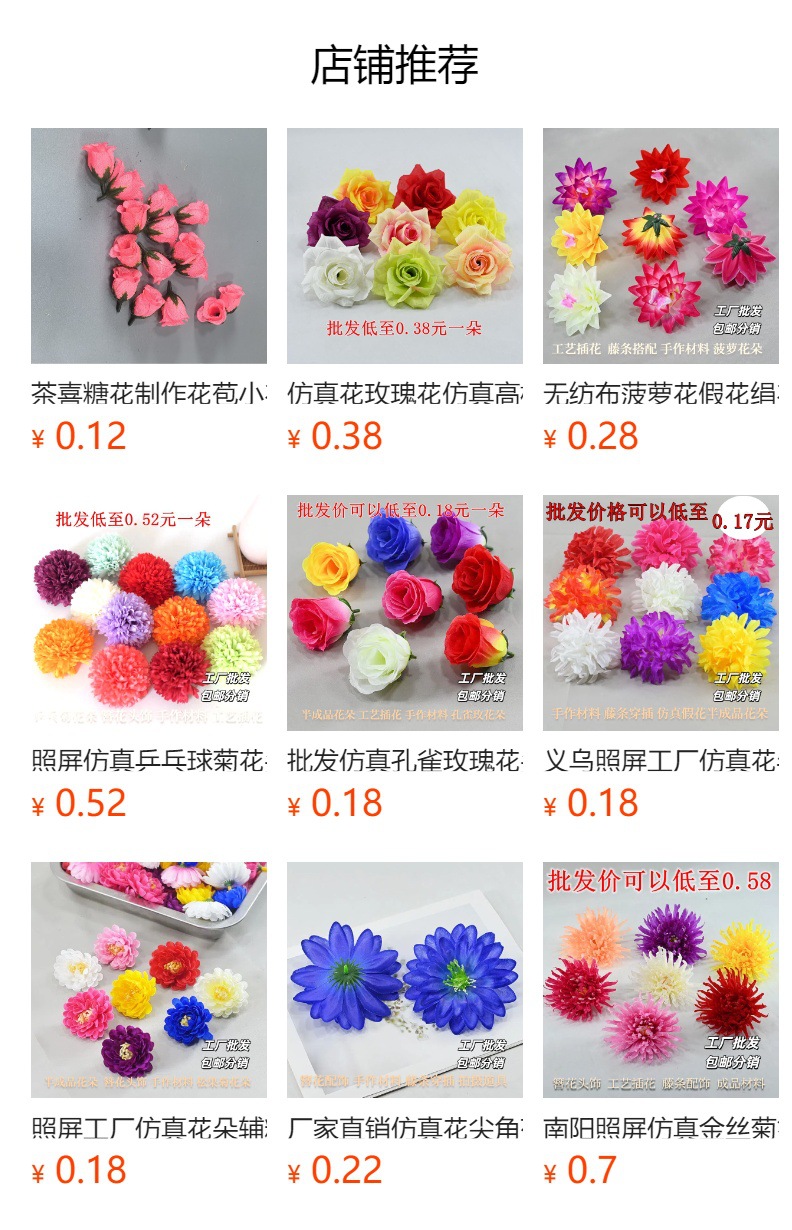 | Flores semiacabadas | Flores decorativas materiales hechos a mano para props de disparo |