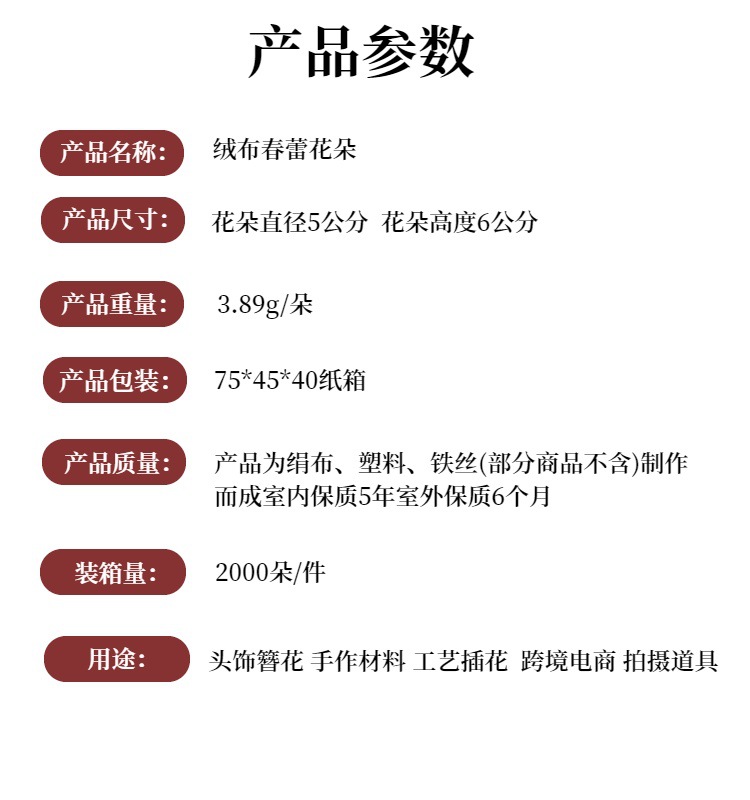 | Número de artículo | Flores de brotes de primavera de terciopelo |