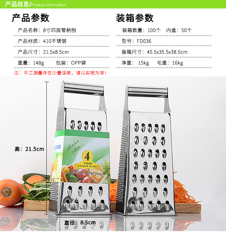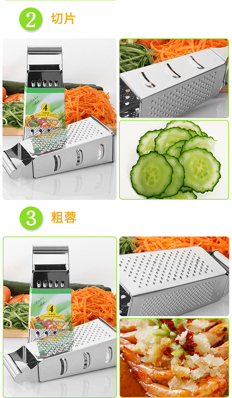 Mayorista de 8 pulgadas cuatro lados raspador cortador de verduras multifuncional cortador de papas de acero inoxidable raspador de piel en stock
