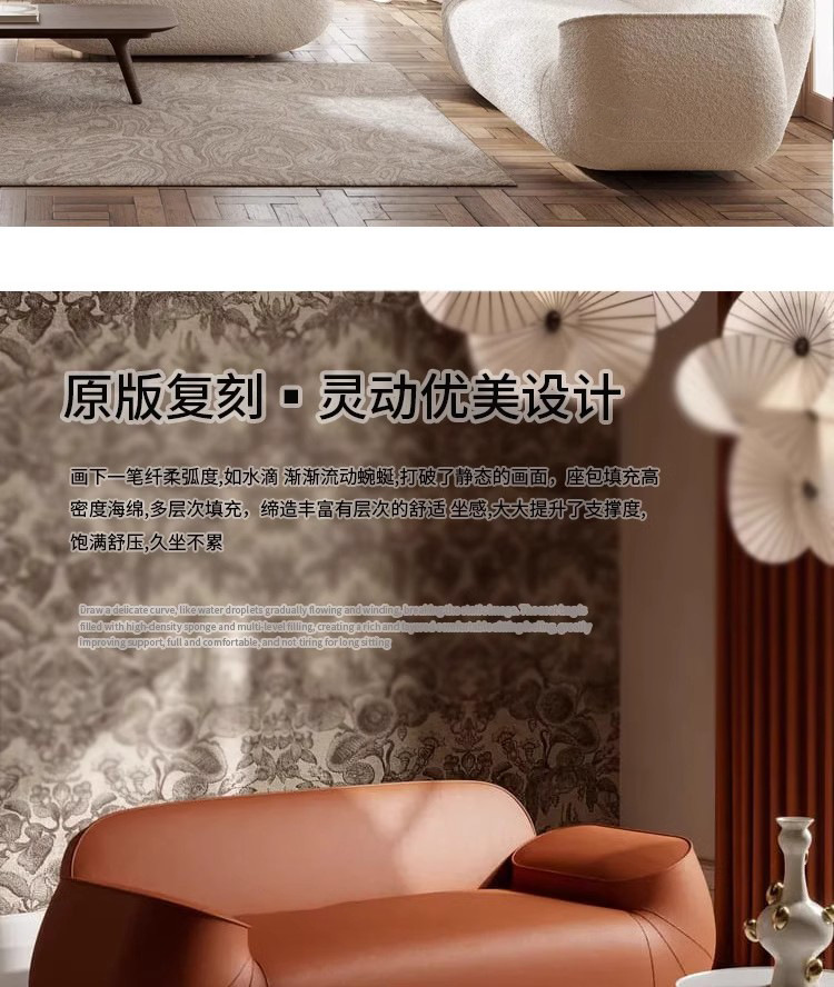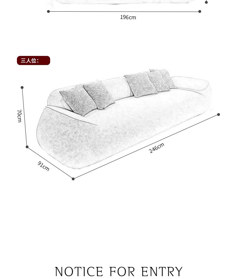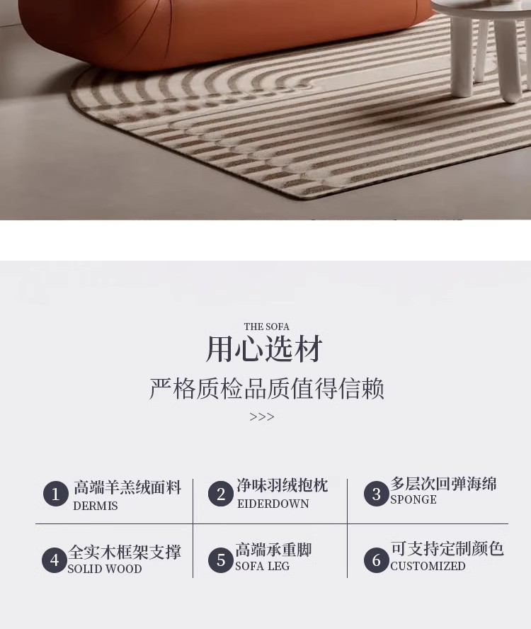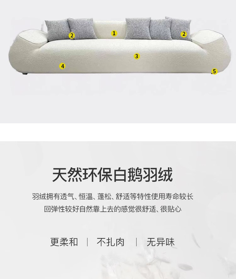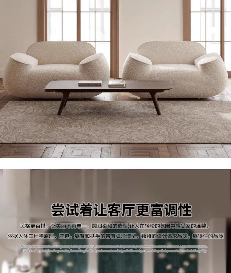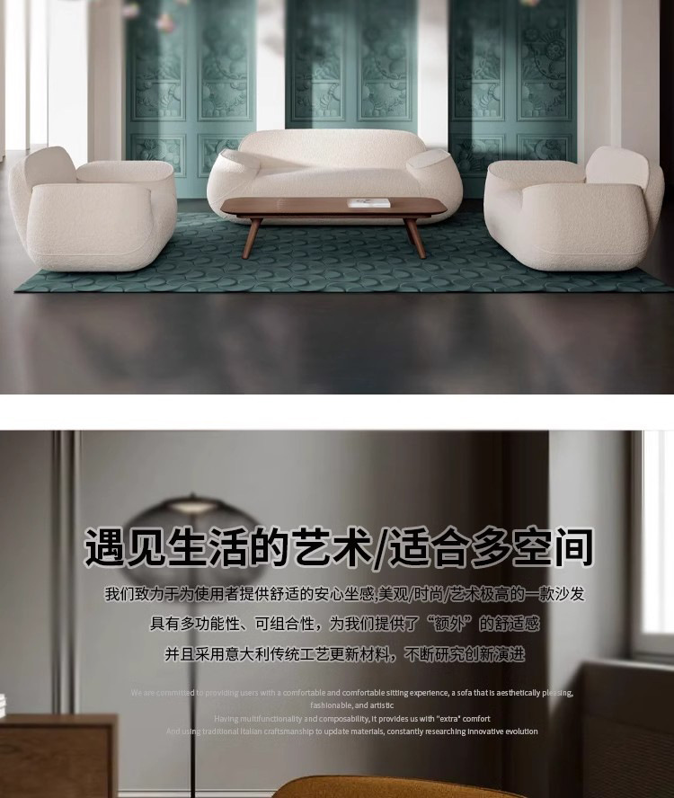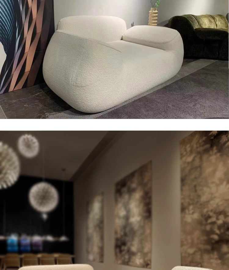 Sofá de cordero minimalista de estilo silencioso, diseño de lujo ligero nórdico, sofá de esquina de la princesa arcada, combinación de sofá grande de alojamiento residencial