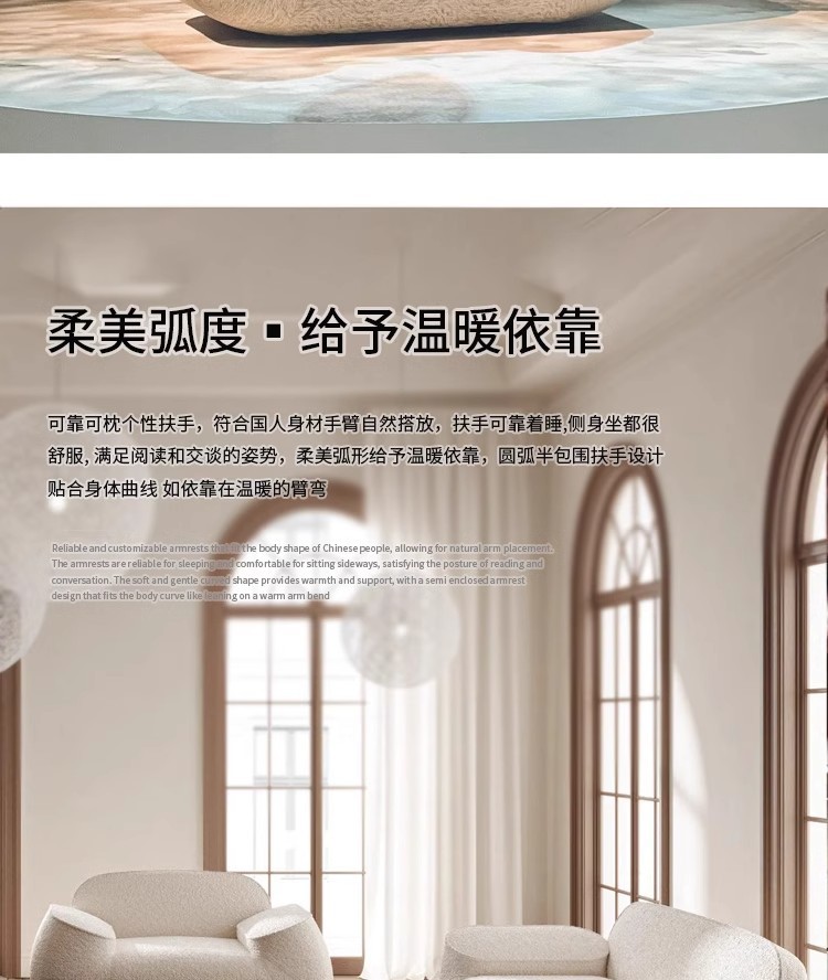 Diseñador de gran piso plano sofá semicircular sala de estar Alexander estilo minimalista italiano combinación de muebles de tela arqueada