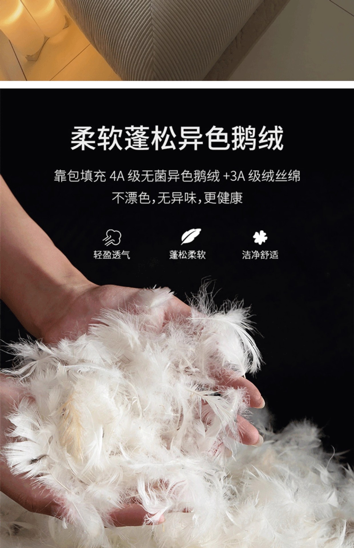 | Relleno interior | Esponjas, plumones, látex |