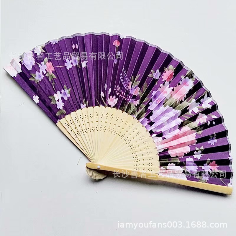 请注意:此种扇骨为二青扇骨,经抛光打磨,扇面为色丁面料,类似于真丝的手感,柔软光滑,有质感