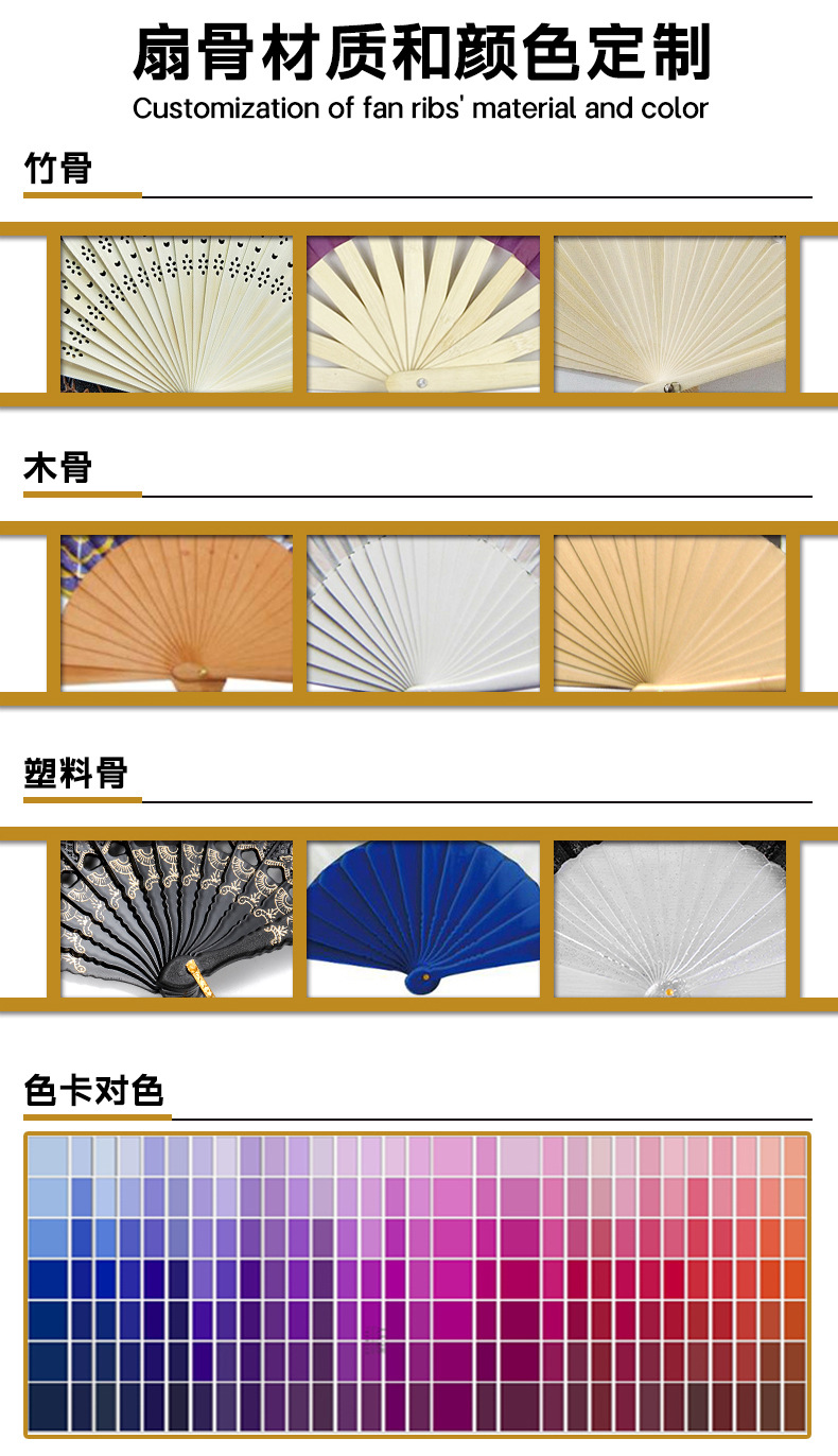 折扇款式定制,根据您订购的数量和所选制扇材质及工艺变化,支持定制打样,欢迎联系客服咨询!!!