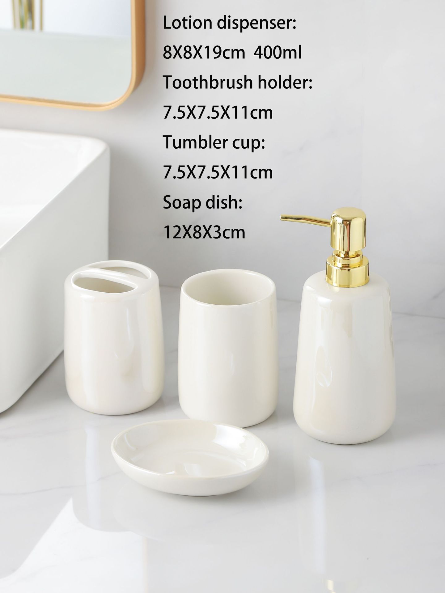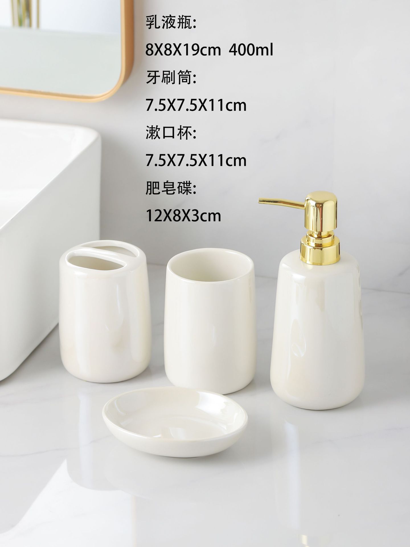 Kit de lavado de lujo ligero y alto valor de la cara botella de embalaje de baño blanco puro botella de emulsión de baño cerámica de cuatro piezas
