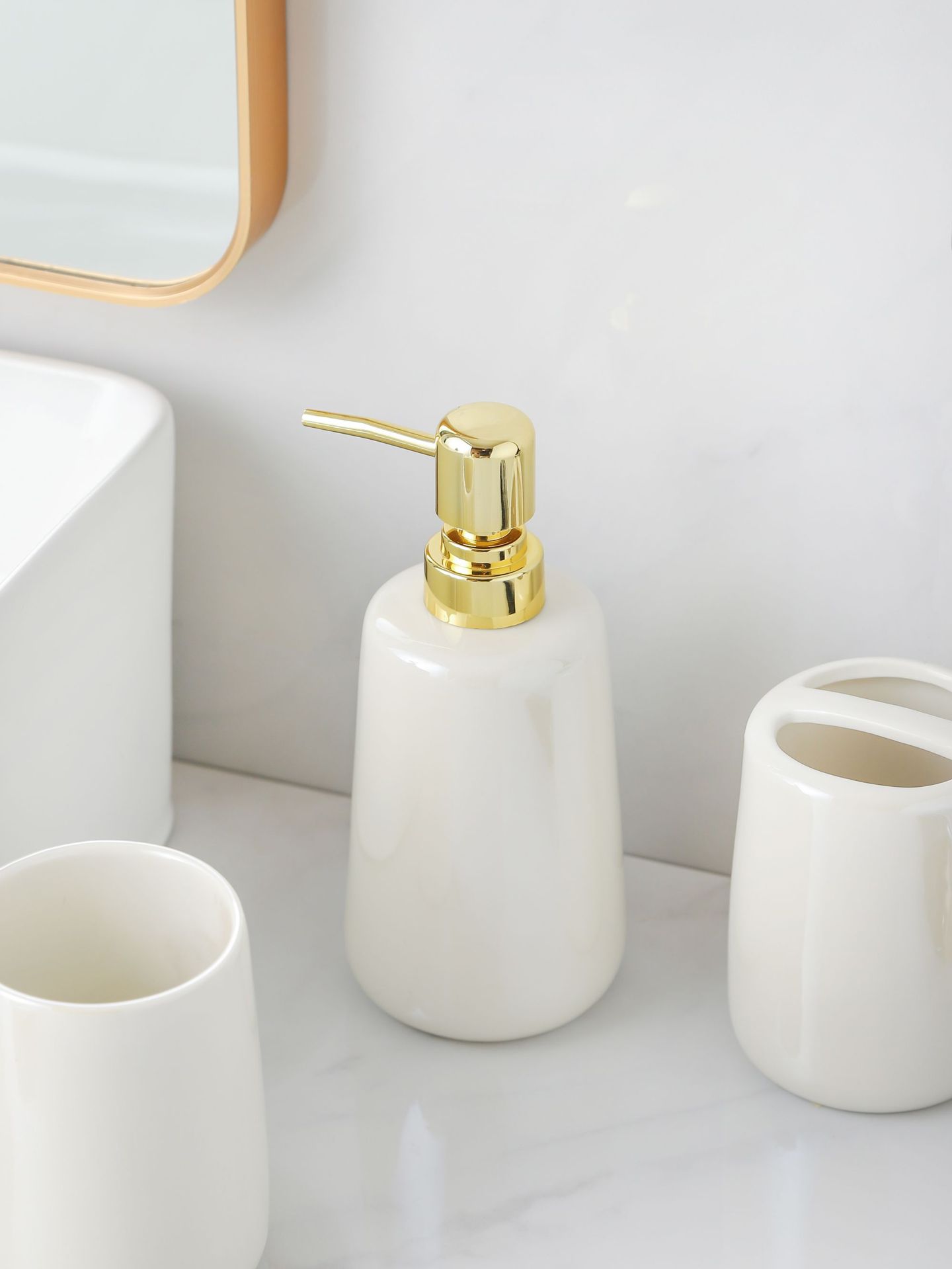 Juego de lavabo de cerámica para baño, tres piezas, vaso para enjuague bucal, jabonera, juego de baño, vaso para cepillo de dientes, venta al por mayor