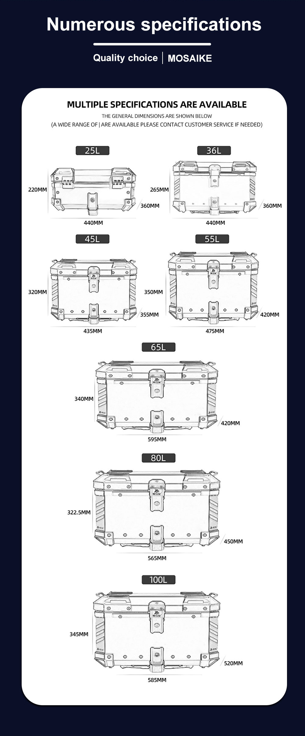| Dimensiones | 28L/36L/45L/55L/65L/80L/100L |