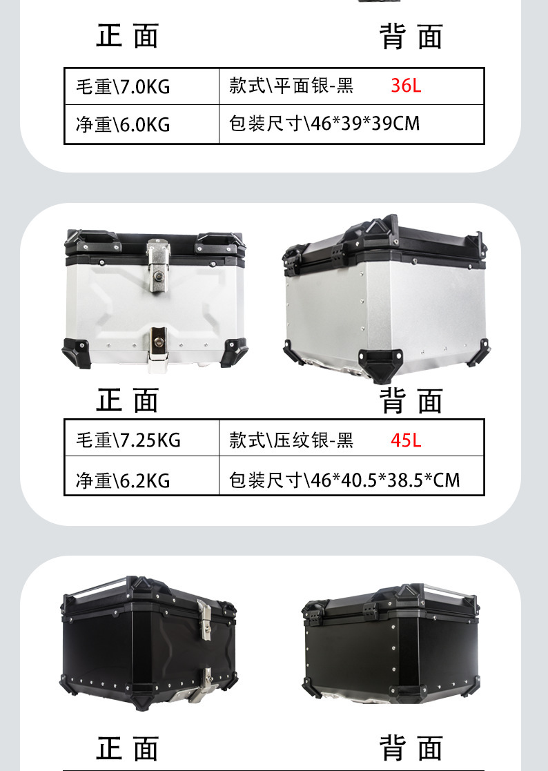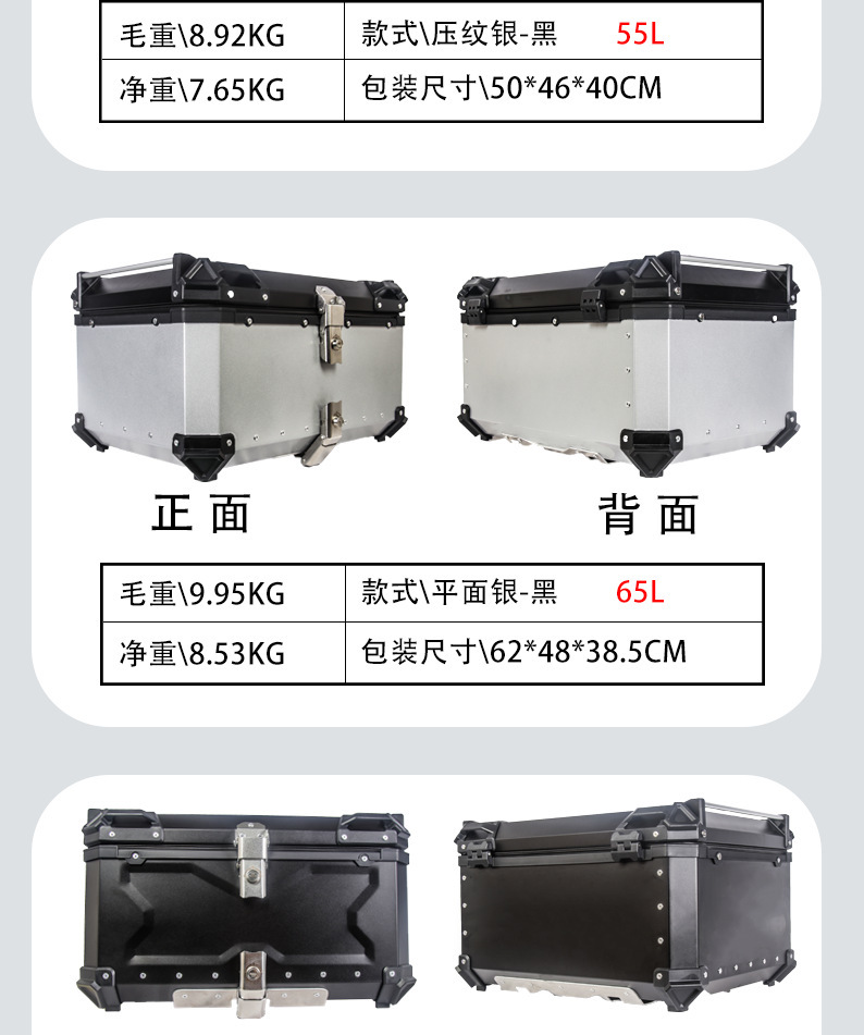 | Colores | 55L plata,65L plata,80L plata,100L plata,55L negro,65L negro,80L negro,100L negro |
