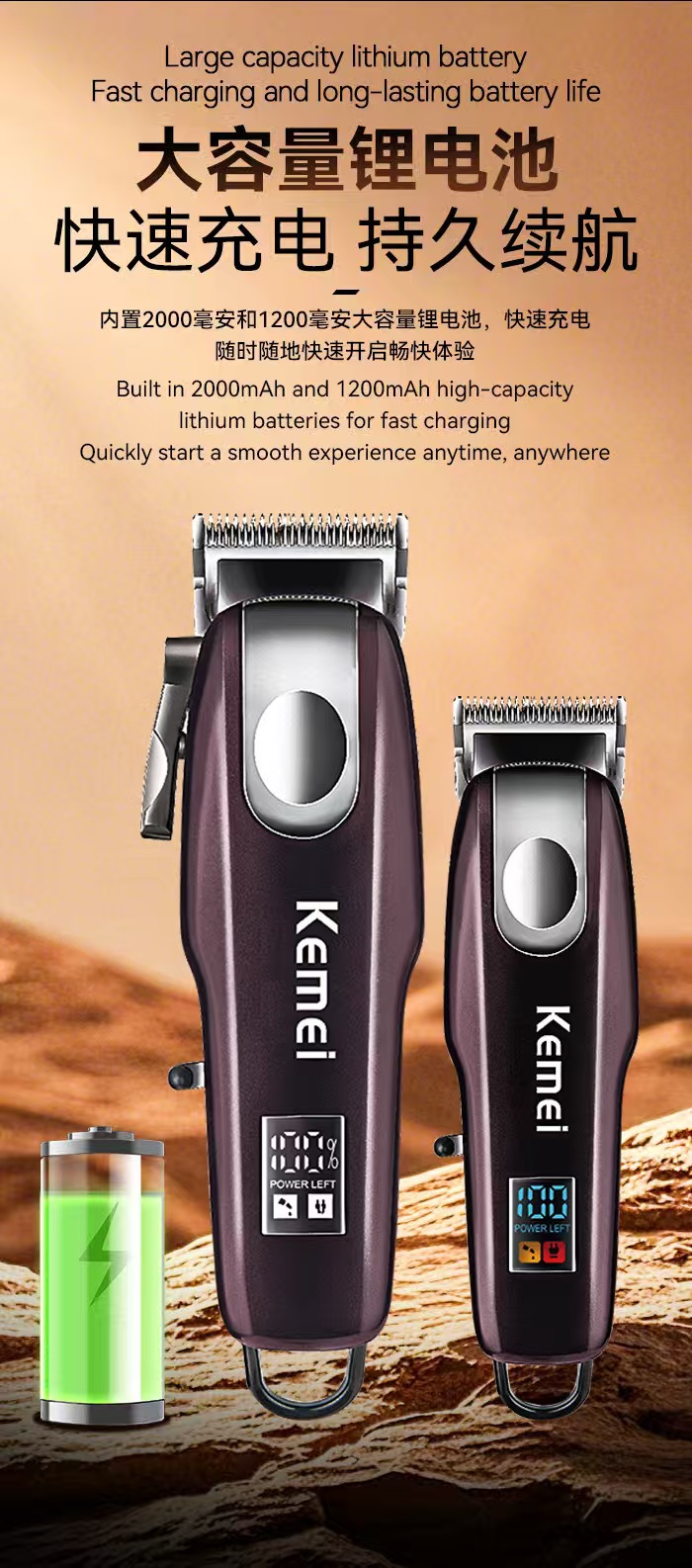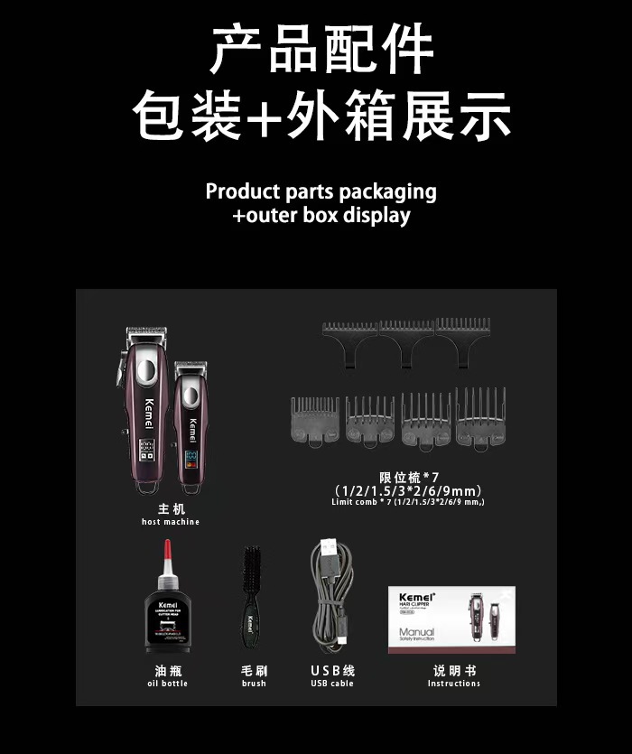Kemei Kemei profesional cortapelos eléctricos cortapelos eléctricos con pantalla digital inteligente cortapelos eléctricos de alta potencia