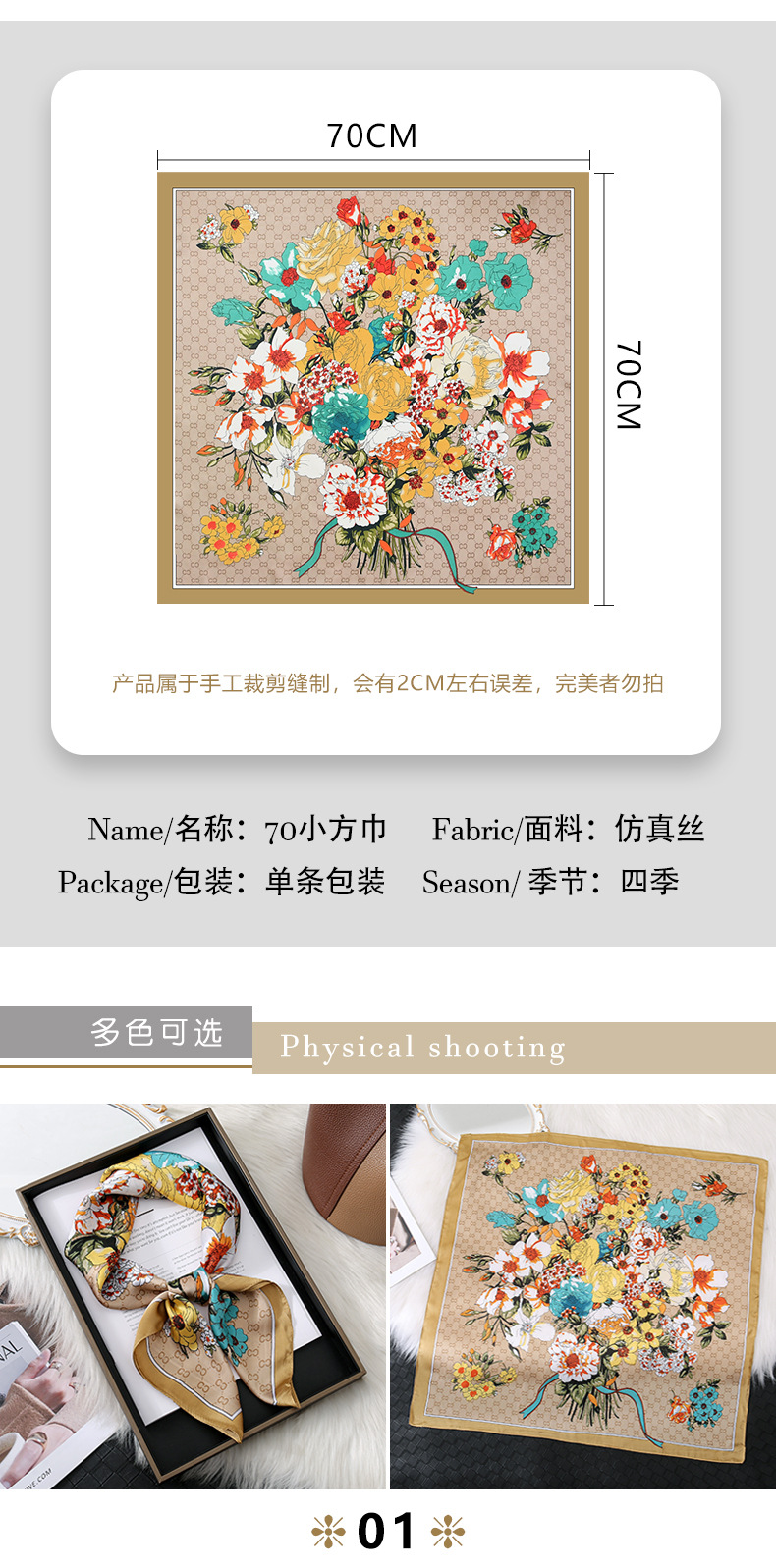 | 01 | Logotipo de la imagen personalizado 70 bufandas de seda simuladas |