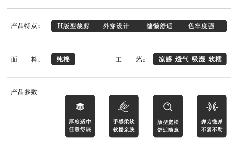 | Función | Ocio, transpirabilidad, sueño, baño, elasticidad, hogar, fresco, cómodo, se puede usar externamente |