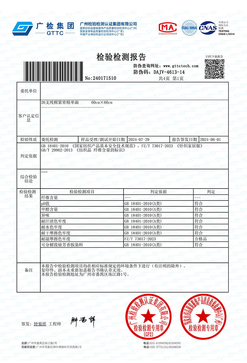 | Contenido de la composición de la tela principal | 95% (incluido) - 100% (excluido) |