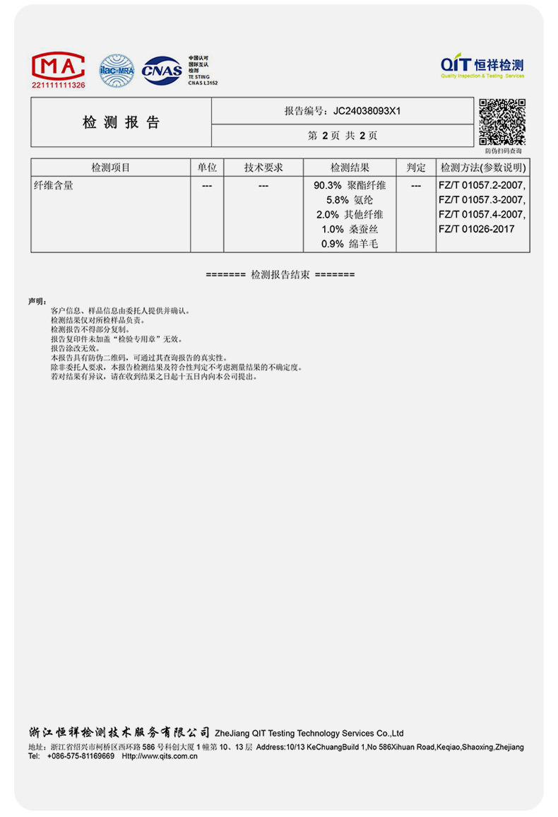 | Contenido de la composición de la tela principal | 90% (incluido) - 95% (excluido) |