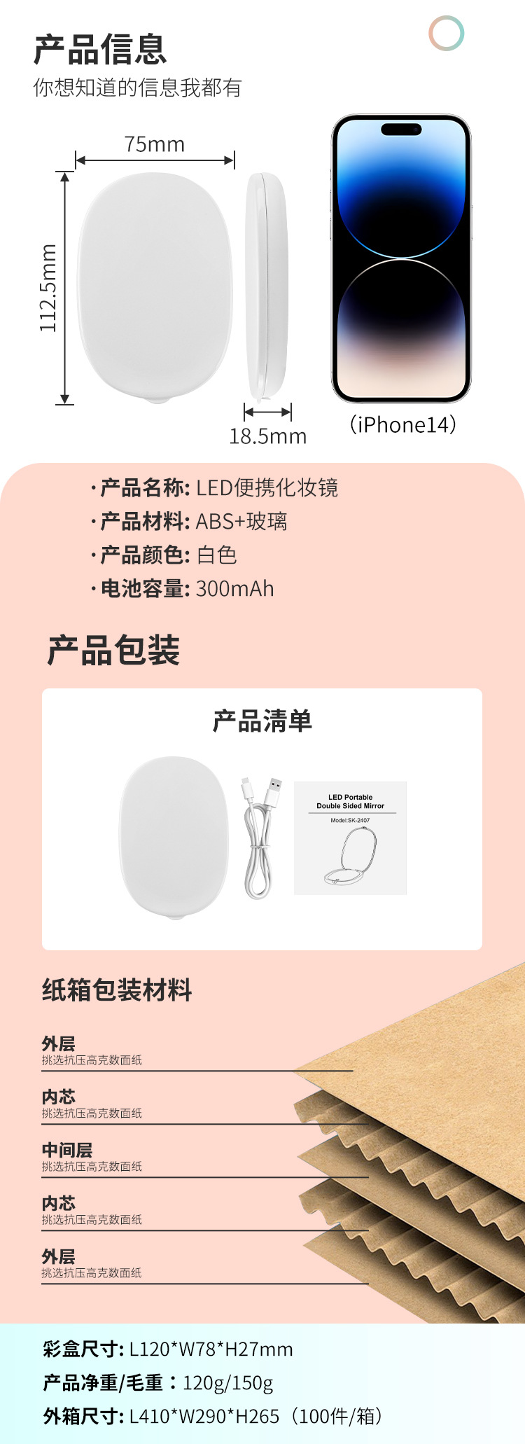| Colores | Estilo ovalado con luz,Redondo sin luz |