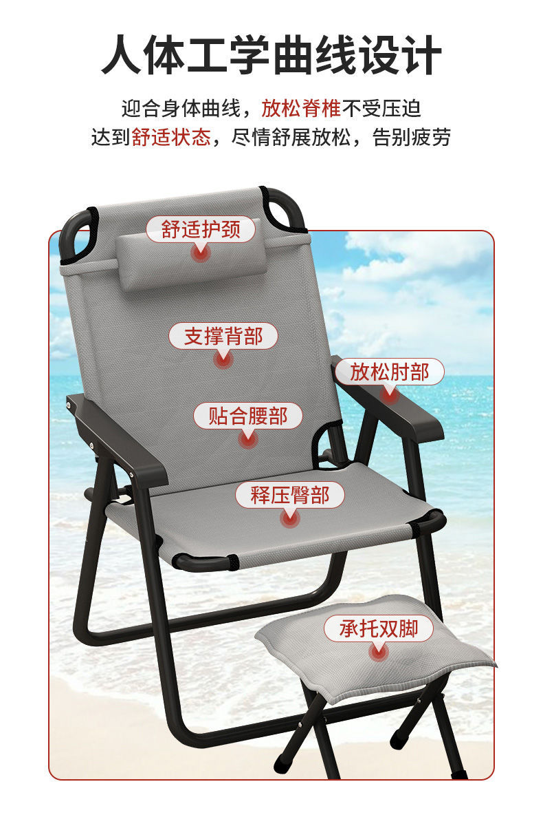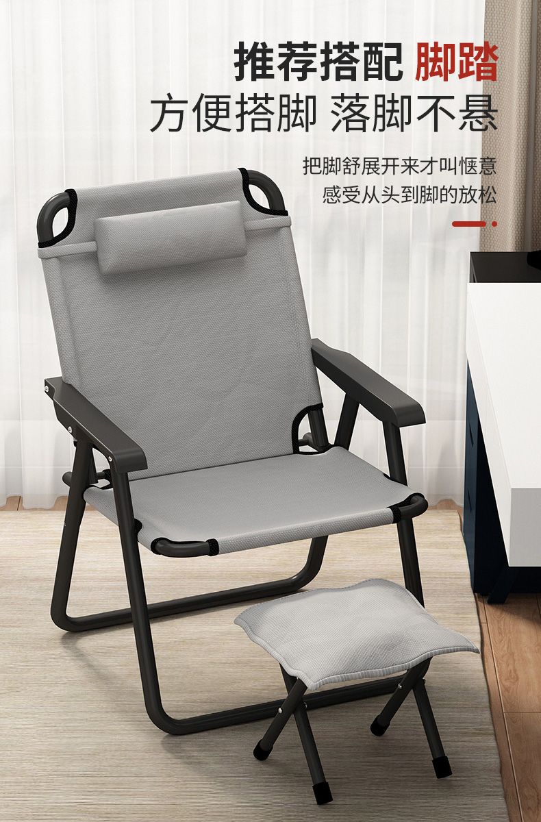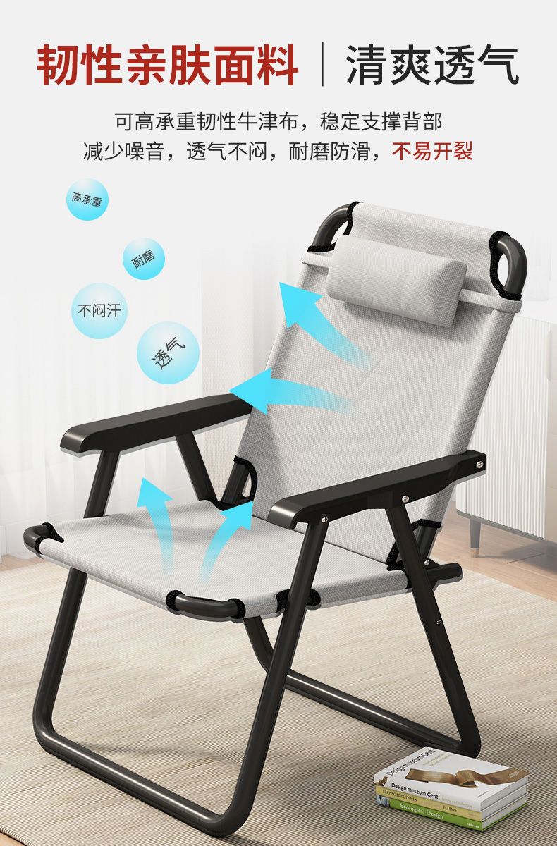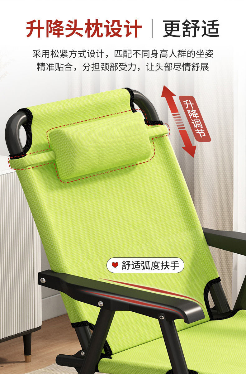 Silla reclinable para el almuerzo Silla plegable Sentado cómodo y sedentario Silla de ocio con balcón de verano Silla perezosa portátil de oficina Puede acostarse y dormir