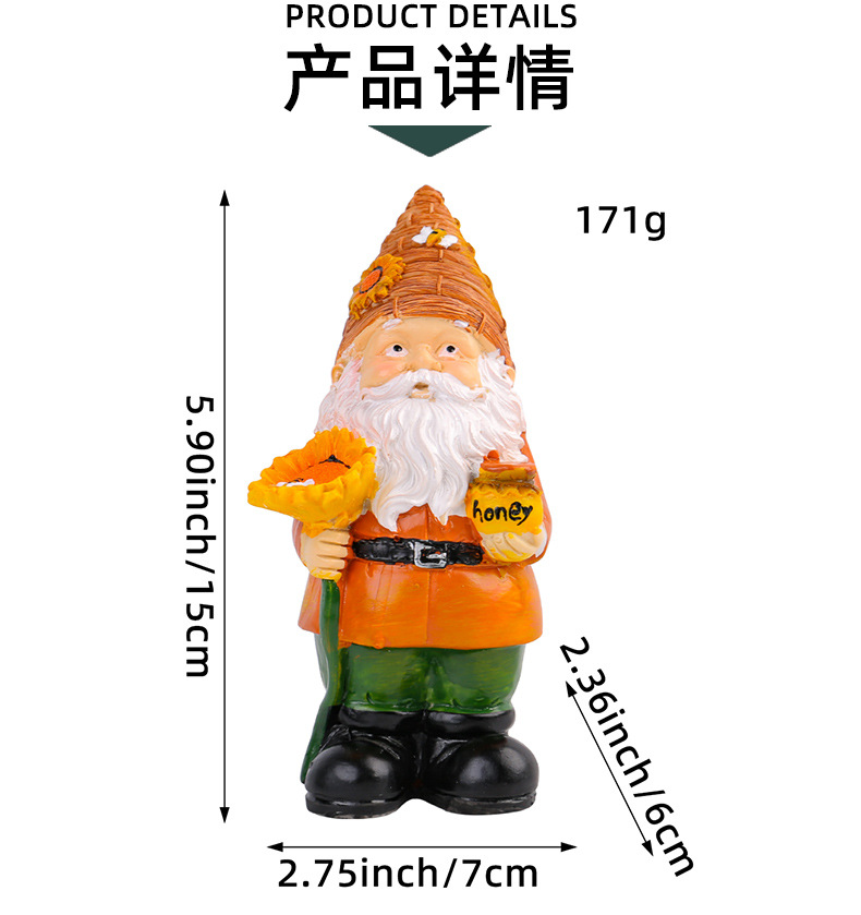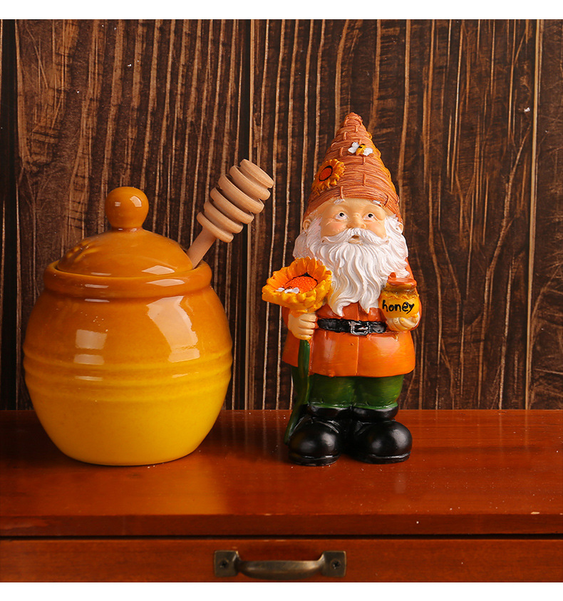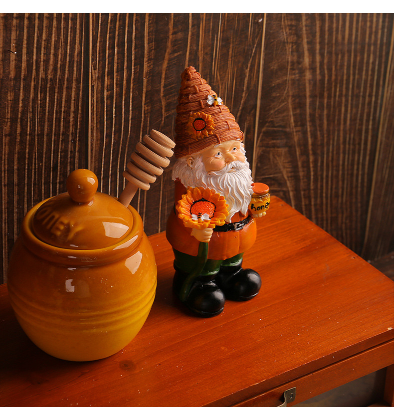 Transfronterizo a los elfos de girasol Adornos de enanos Patio Jardín Resina Honeypot Enano Decoración Artesanía