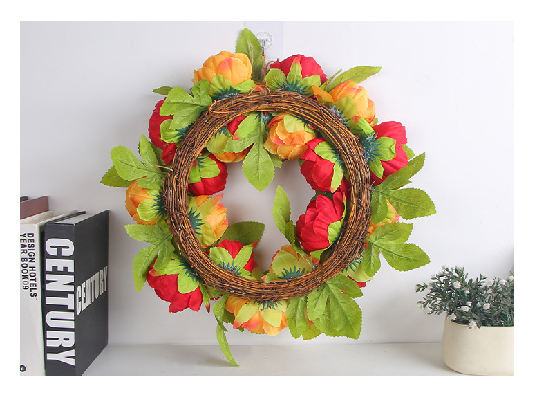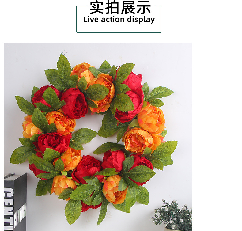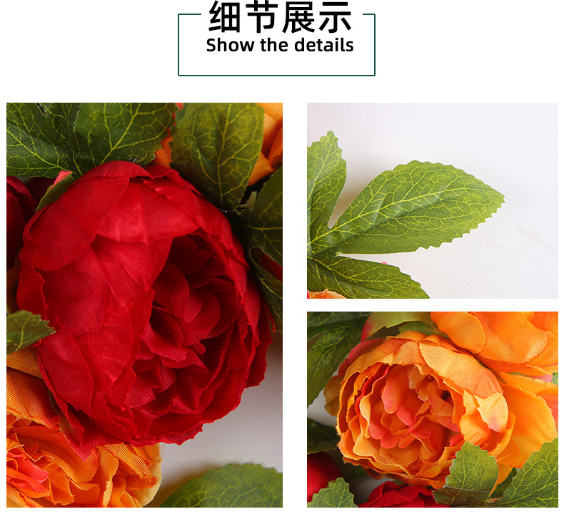 Hong Kong amor Venta caliente rojo amarillo peonía Garland boda tiro decoración guirnalda Ventana del centro comercial guirnalda en stock al por mayor