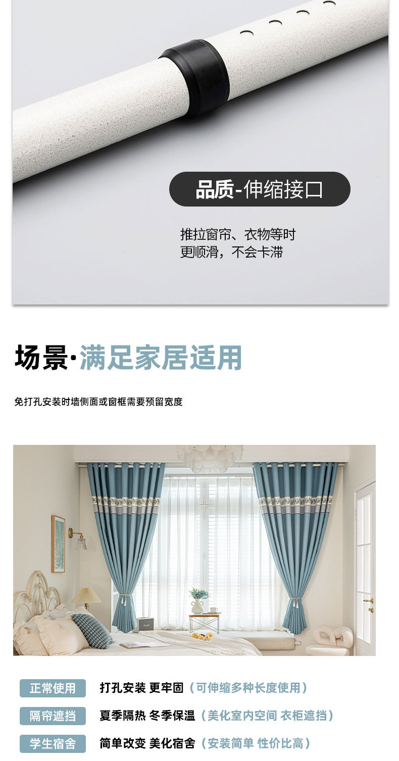 | Especificaciones | Se aplica un ancho de 0,7 - 1,1 M [altura de la cortina 2,2 m] apertura única - barra telescópica de entrega, ancho de 1,1 - 1,6 M [altura de la cortina 2,2 m] doble apertura - barra telescópica de entrega, ancho de 1,6 - 2,1 M [altura de la cortina 2,2 m] doble apertura - barra telescópica de entrega |