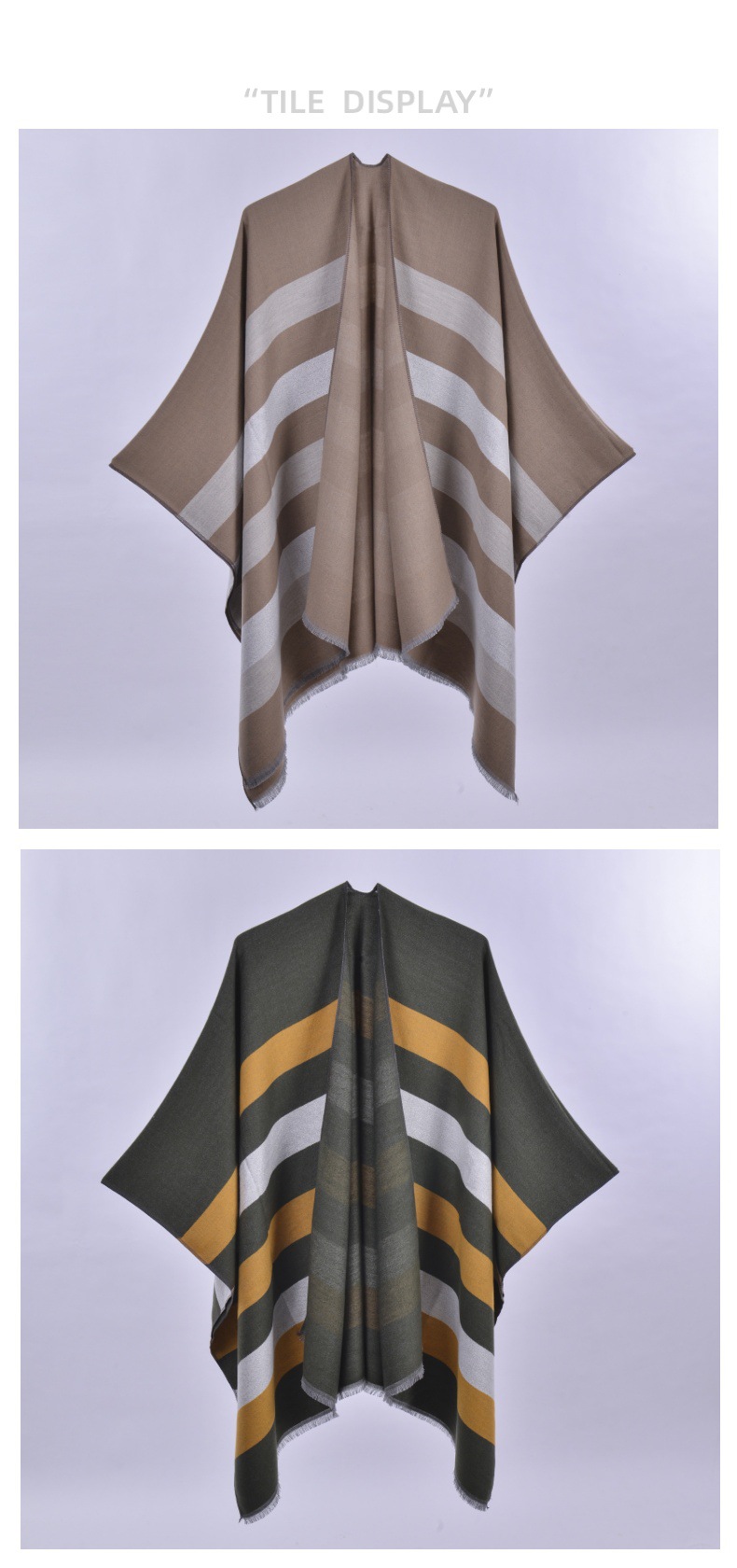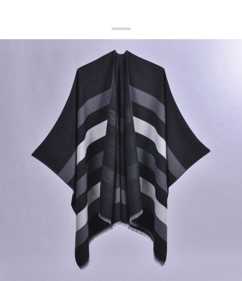 产品属性:披肩经过抓绒处理,表面会有少许浮毛,多清洗几次即可,为避免起静电尽量不要配合毛线衣穿搭,
